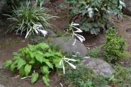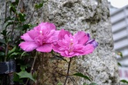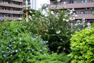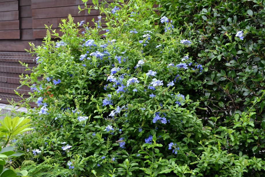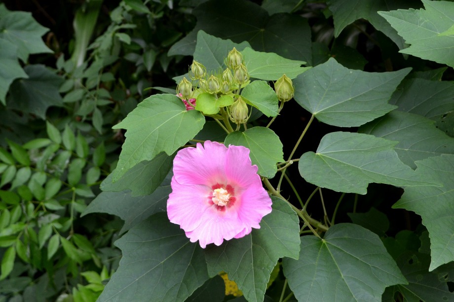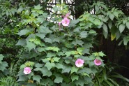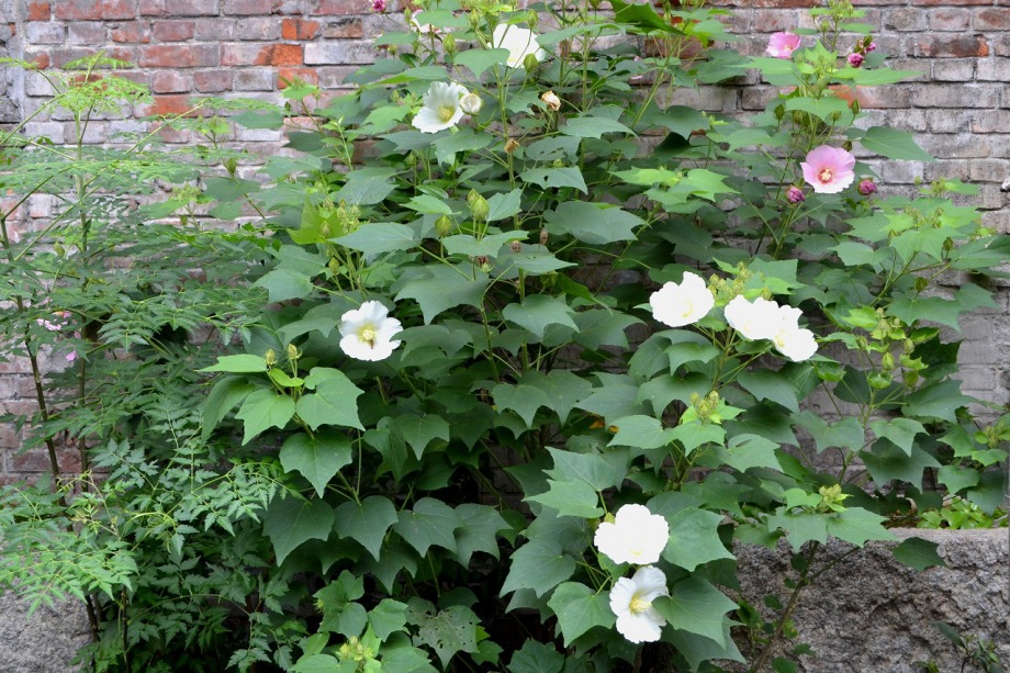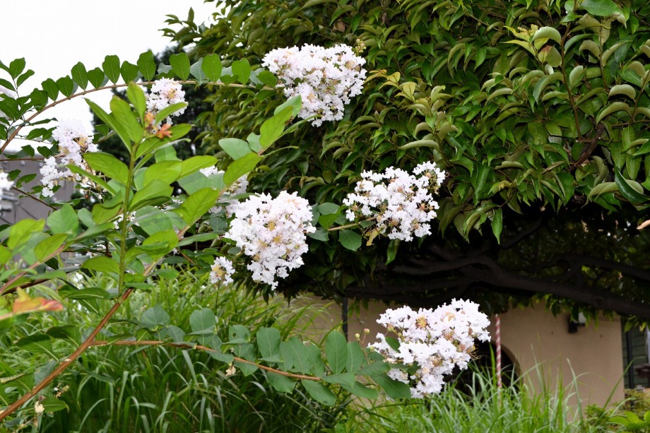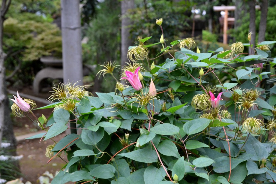 参道にはピンク色のムクゲや白い百日紅が咲いています。常林寺には名前の分からない花が色々と咲いていました。