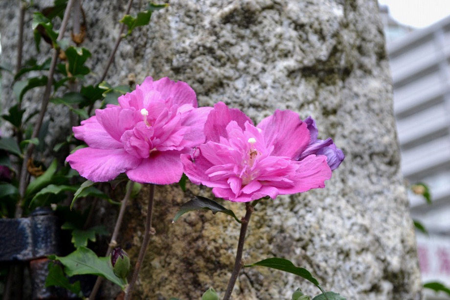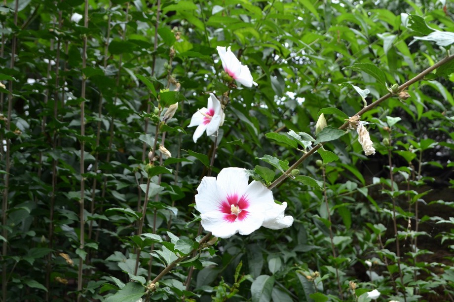 「一言」三田5丁目の龍源寺には白やピンクのムクゲの花が咲いていました。萩はありましたが、花は咲いていませんでした。