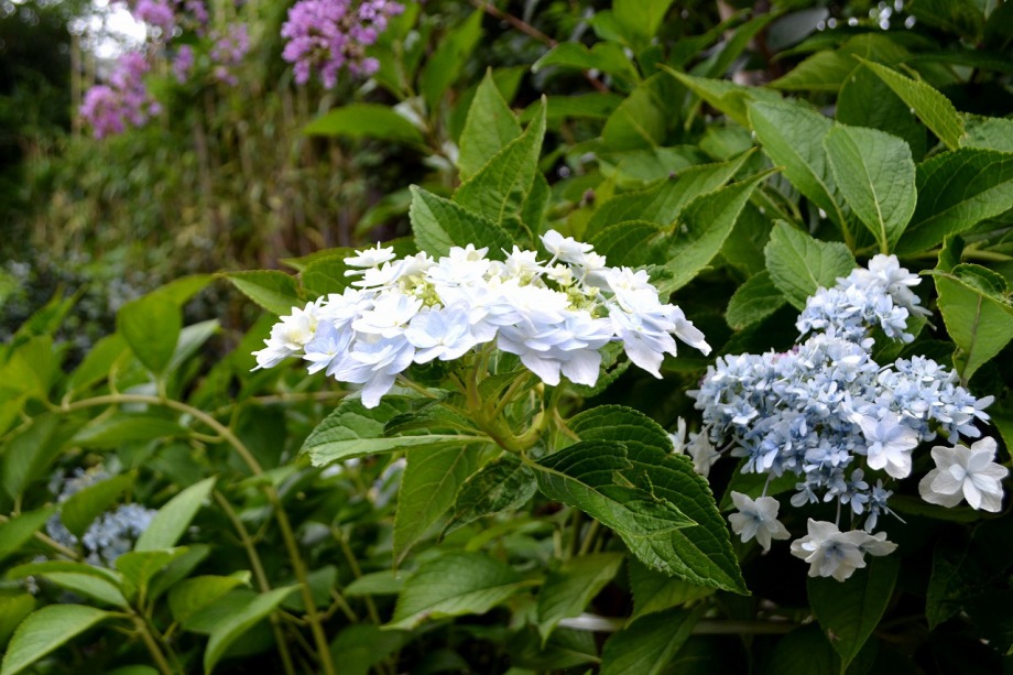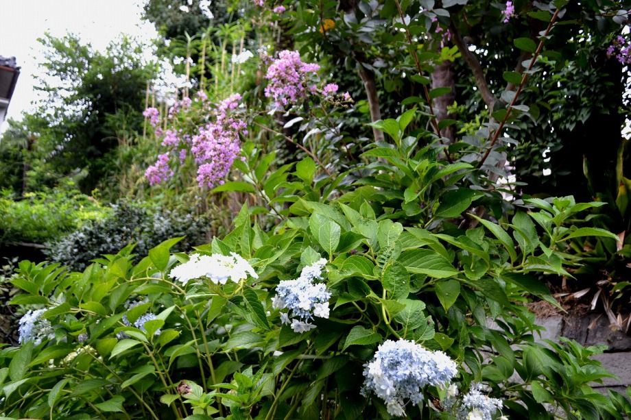 玉鳳寺の大きな百日紅の木はまだピンク色の花が咲いていました。薬王寺にはまだ、ガクアジサイが咲いていました。