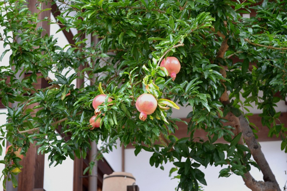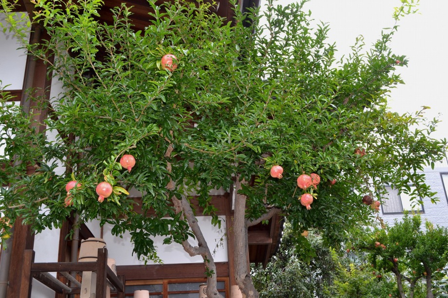 ピンク色の百日紅の花やムクゲの花も咲き、綺麗です。正山寺には柘榴の実がなっていました。