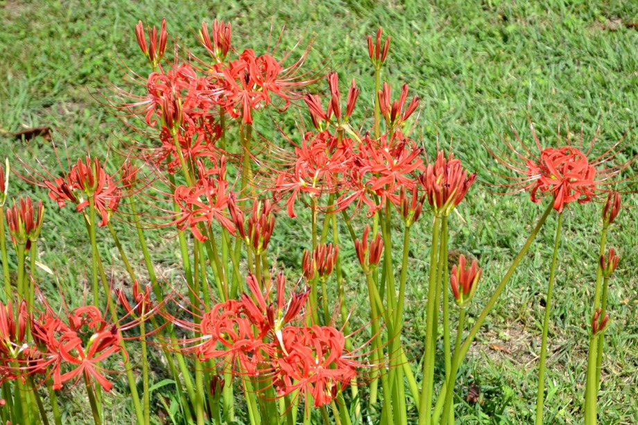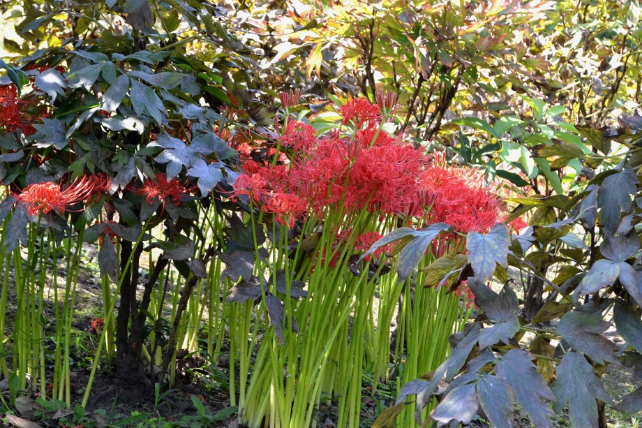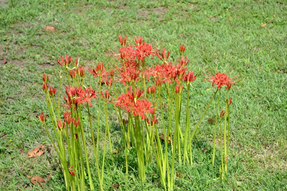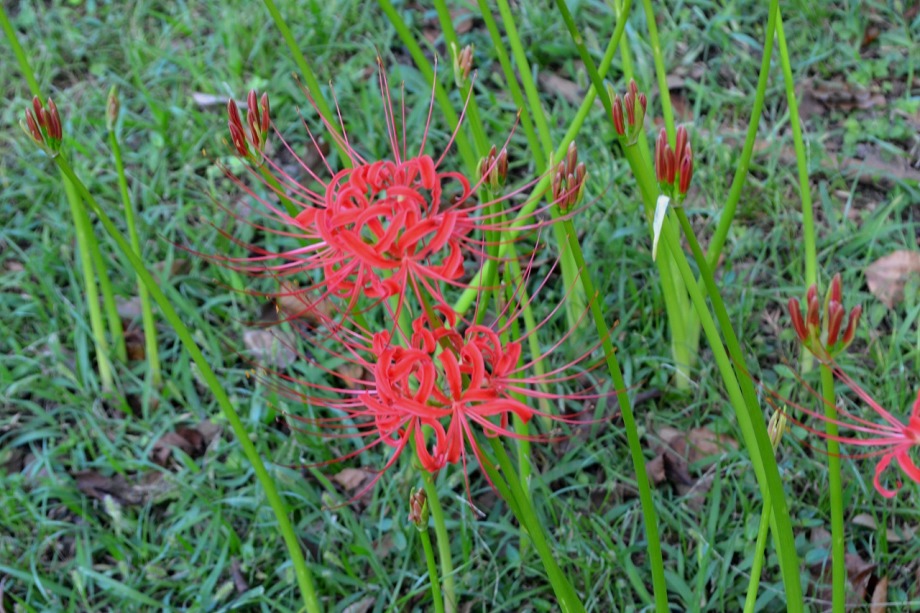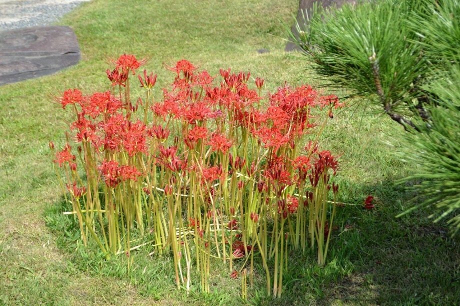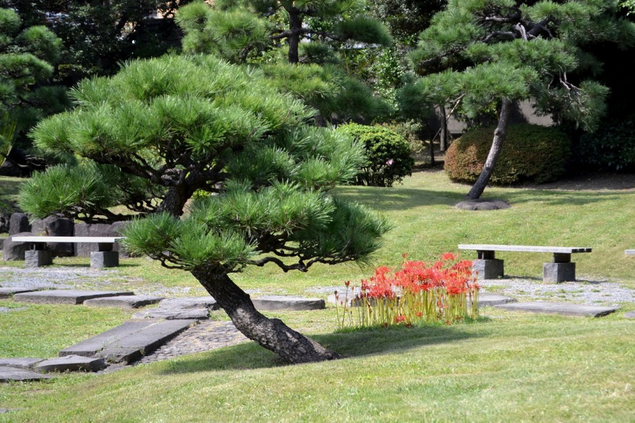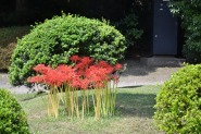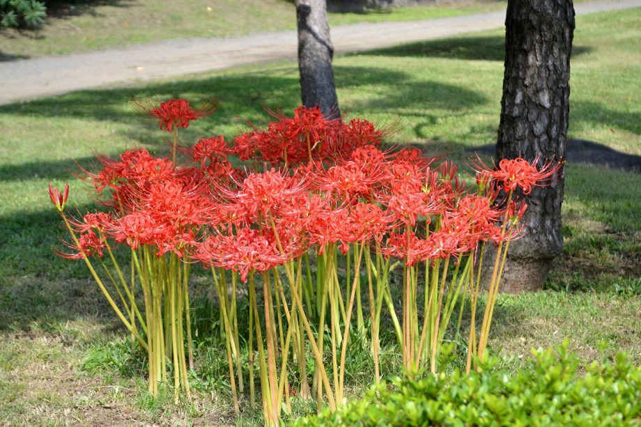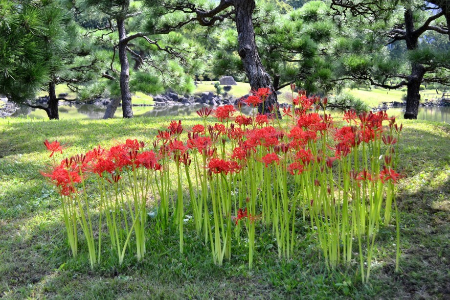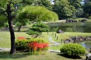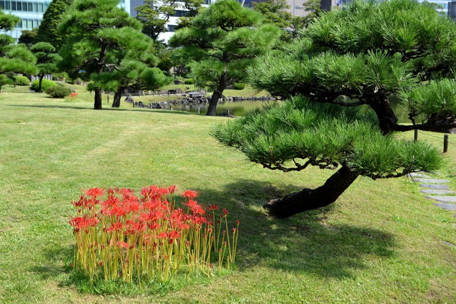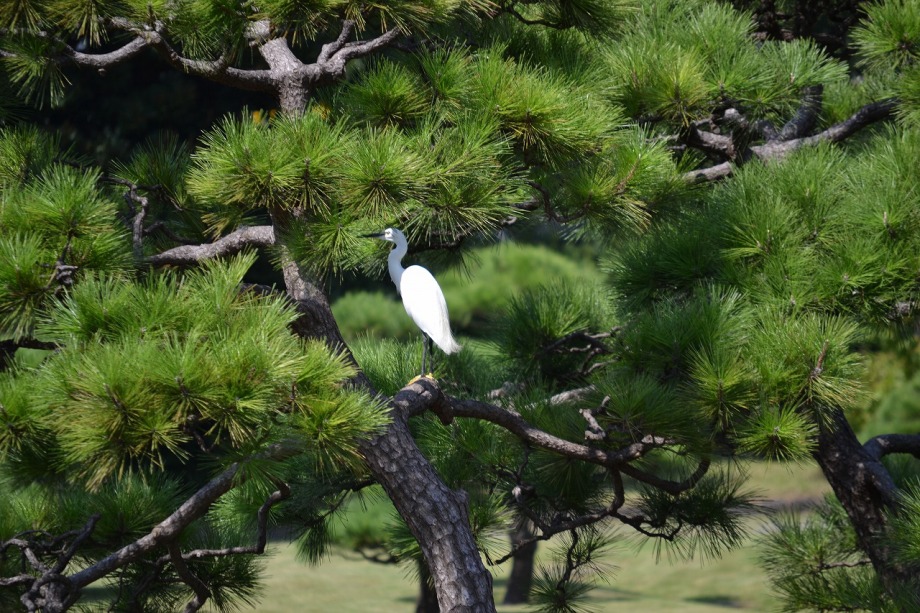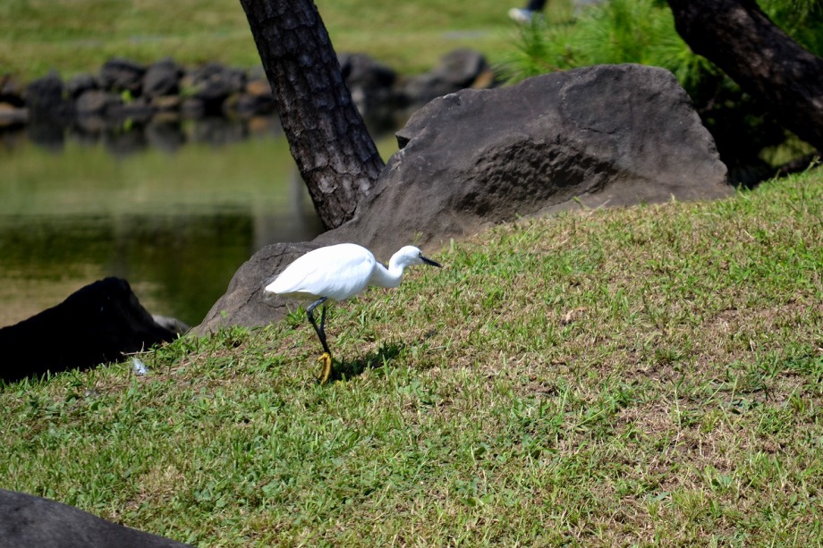 「一言」旧芝離宮の入り口の桔梗はまだ咲いていました。ピンク色の百日紅もまだ花が残っていました。園内には彼岸花があちこちに咲いています。 ほとんどが赤い彼岸花ですが、庭園に彩をつけています。また、萩の花が咲き始めていました。サギ?が飛んできて、色々なポーズをしていましたが、 なかなか飛んでくれませんでした。珍しく糸トンボがいましたので、写真を撮りましたが、なかなか見つけ難い感じです。