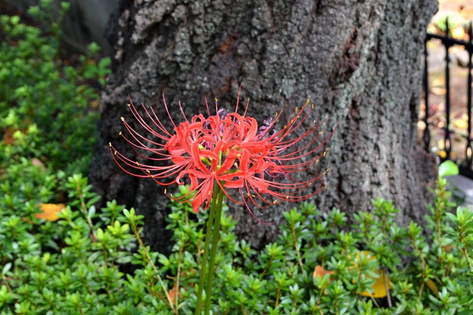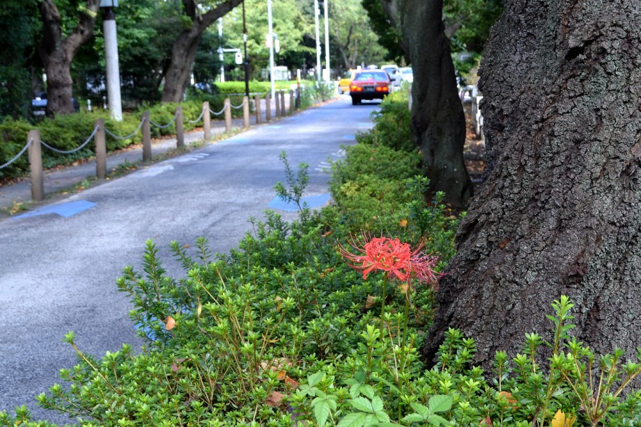 庭園のお花は少なかったのですが、今回も毛利公園にはお花はありませんでした。青山霊園には一本だけ、彼岸花
