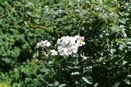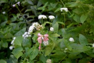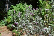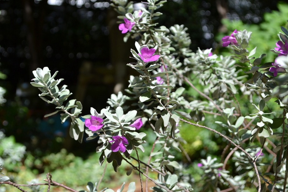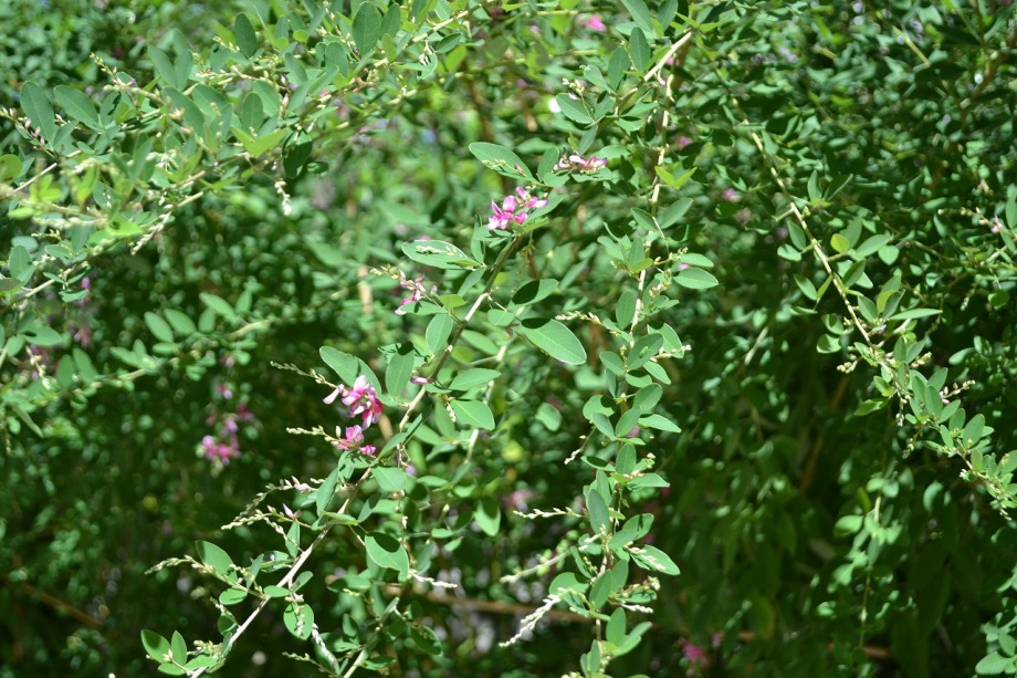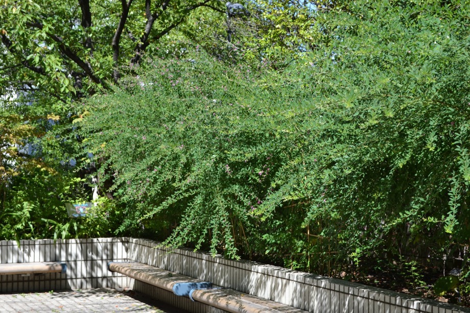 人が庭の手入れをしていました。萩の花も咲き出していました。
