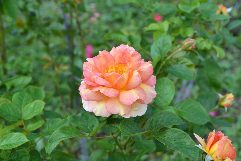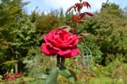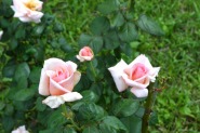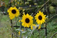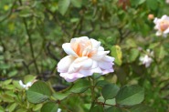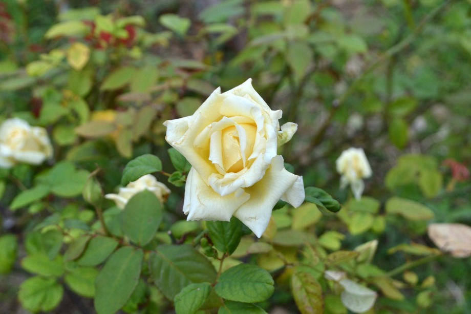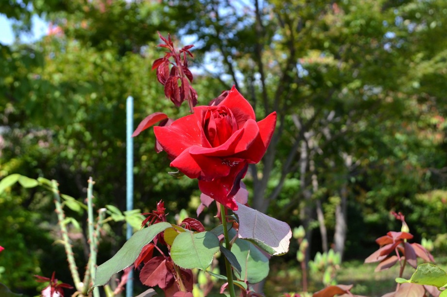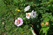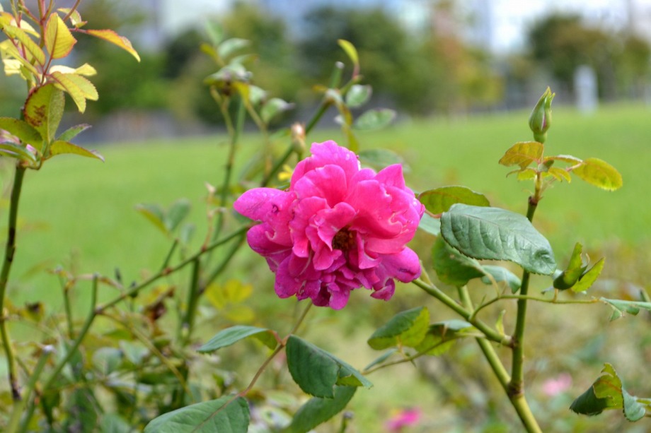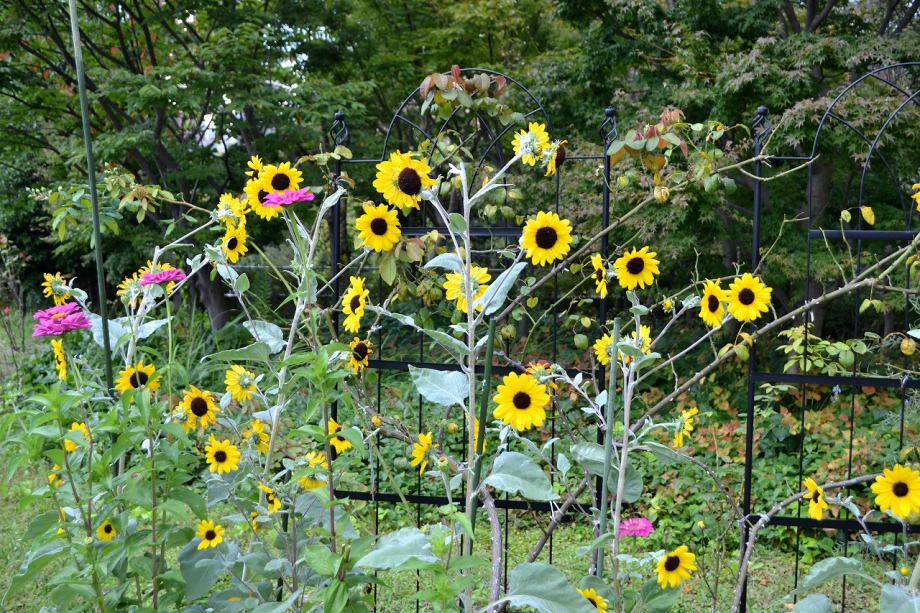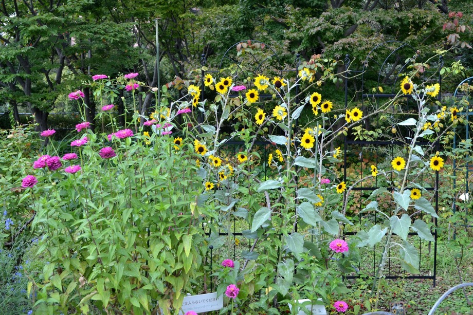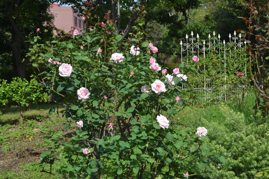 「一言」芝プリンス公園のバラの花が咲き出しました。自立型のバラが中心ですが、形が良く、色々な色の花が咲いていました。 バラの花の色も鮮やかで、綺麗でした。ヒマワリやダリヤが集中してたくさん咲いていました。2匹の蝶が戯れながら、お花に 飛んできていました。