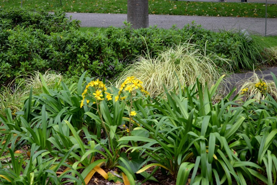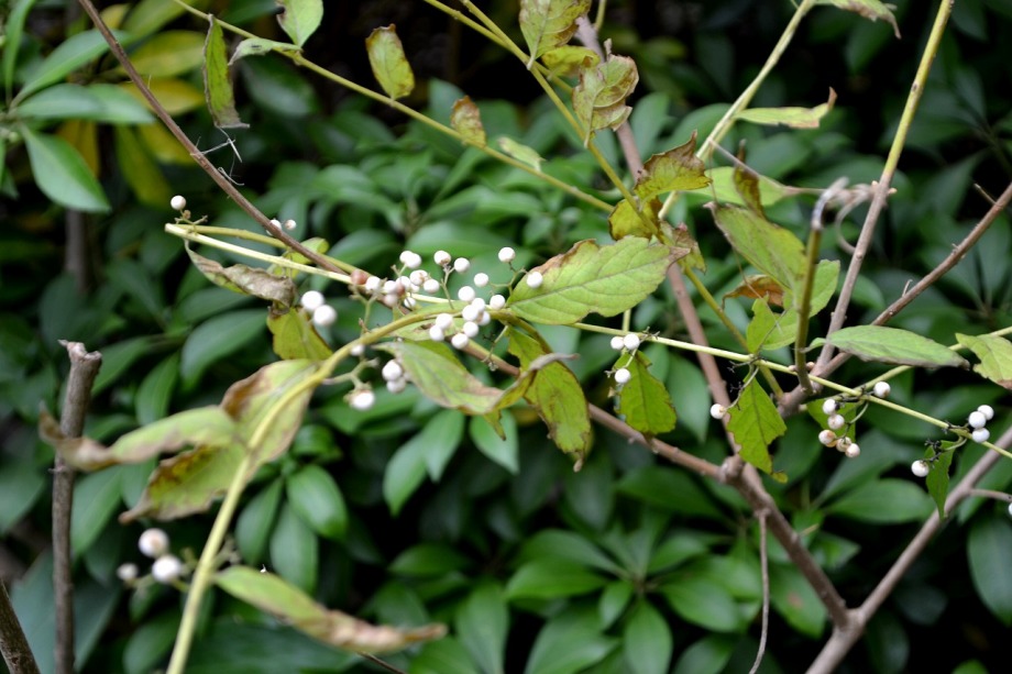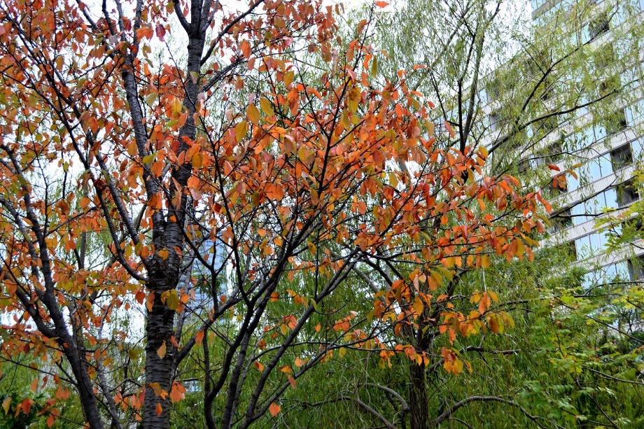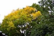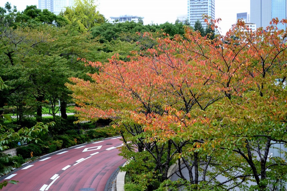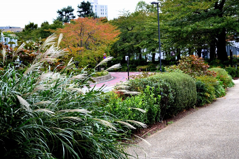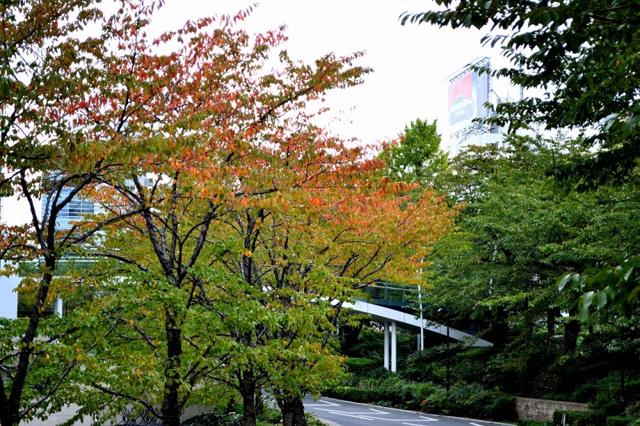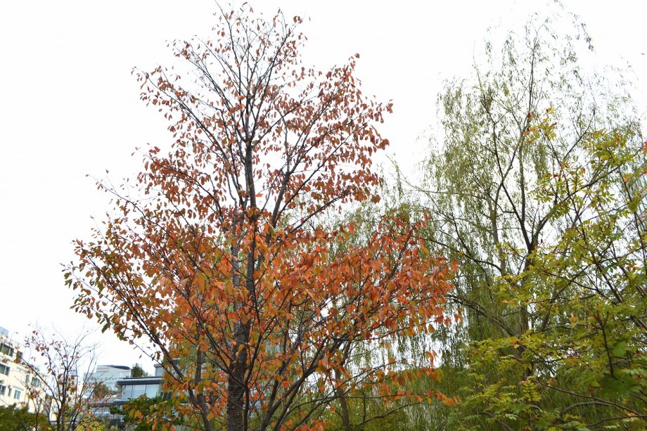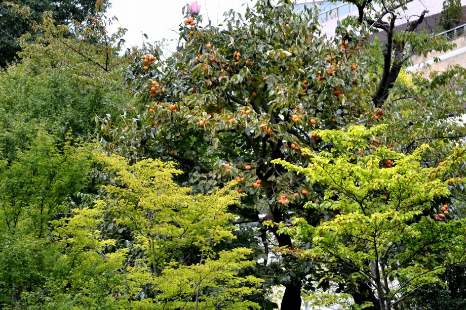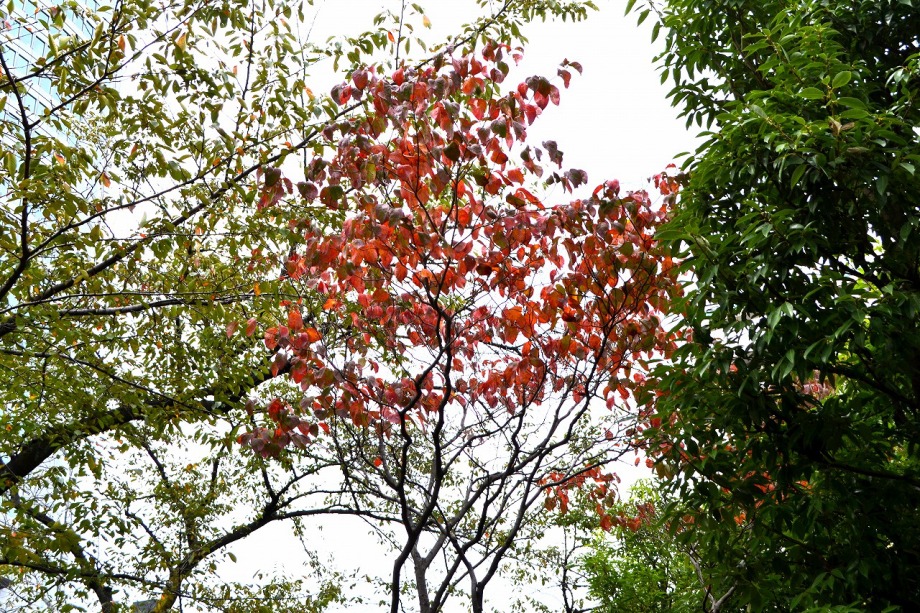 「一言」檜町公園にはホトトギスやツワブキの花が咲いていました。ドウダンツツジが紅葉していました。ヤマザクラも葉が色付いていて 秋を感じさせてくれました。あずまやの傍には大きな木の上の方が黄色くなっていました。ススキも残っていましたが、近くの南天 には実がなり、葉が赤くなっていました。毛利公園には柿がたくさん実をつけていました。イチョウはこれから紅葉する感じです。