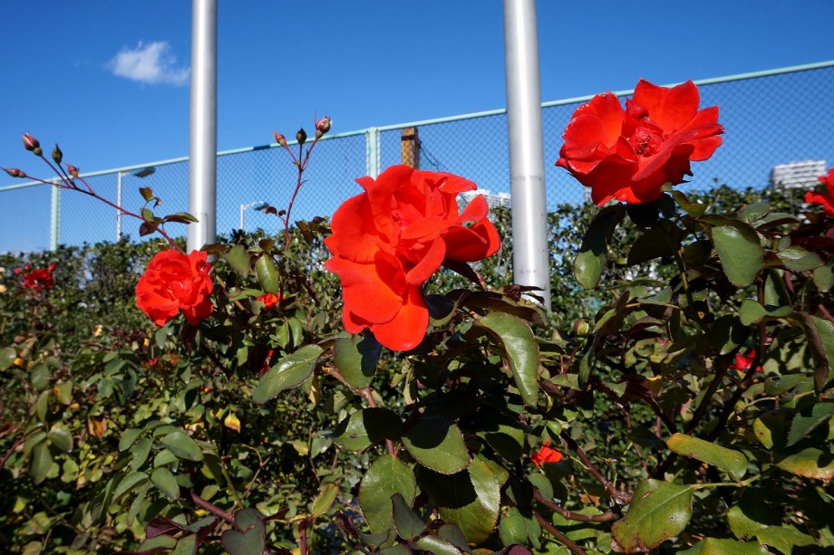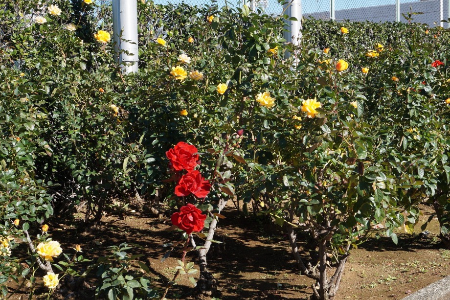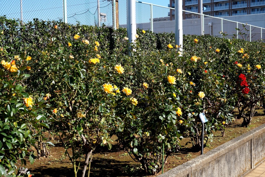 「一言」今日は用事があったので、芝浦中央公園に行ってみました。運動場のバラ園には非常にたくさん花が咲いていました。形が良く、