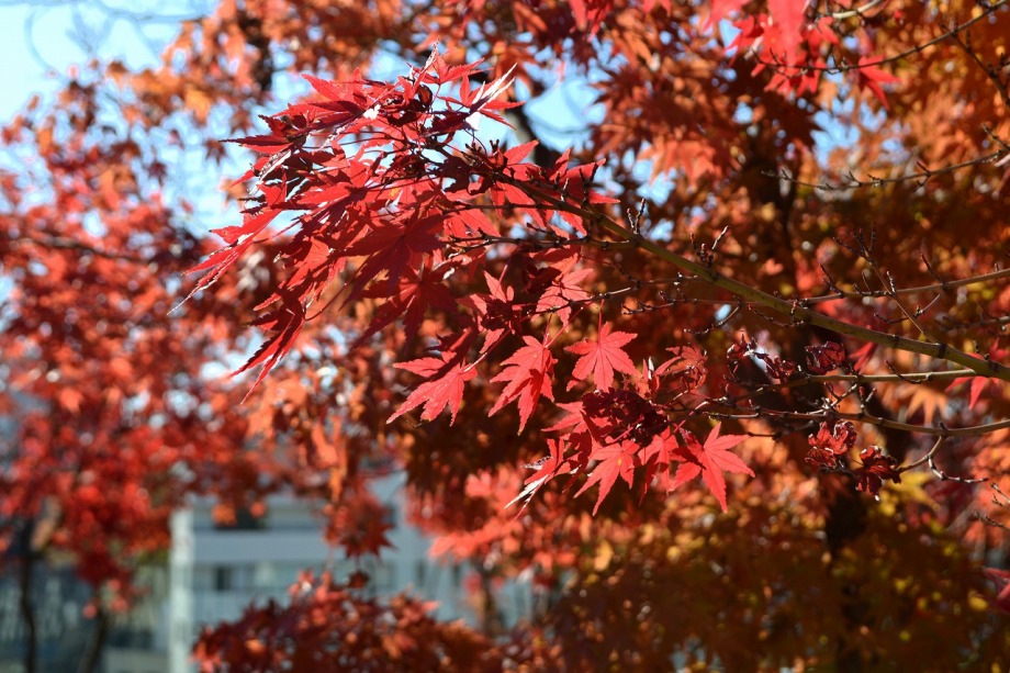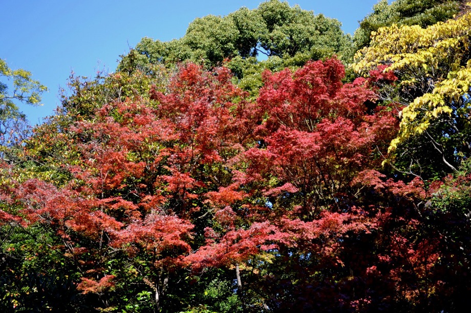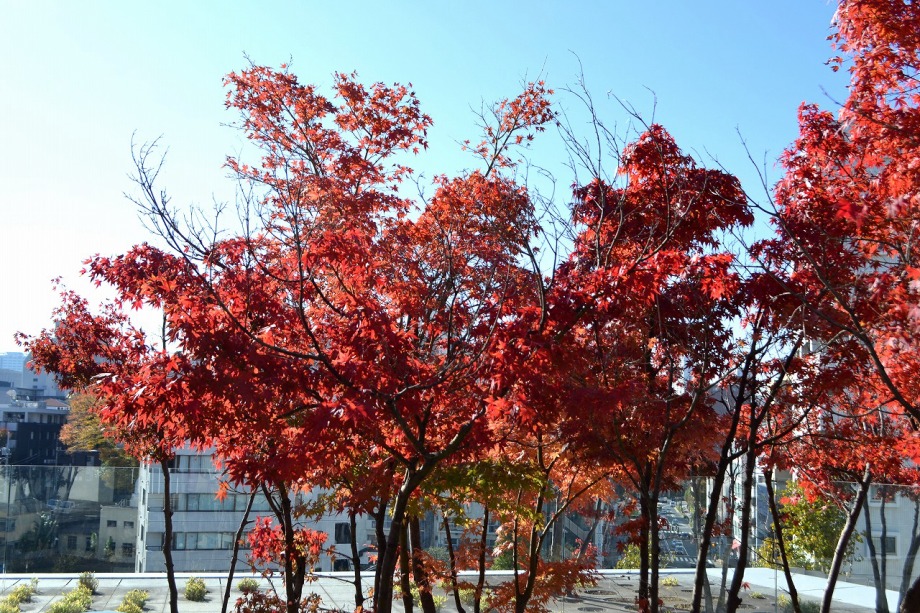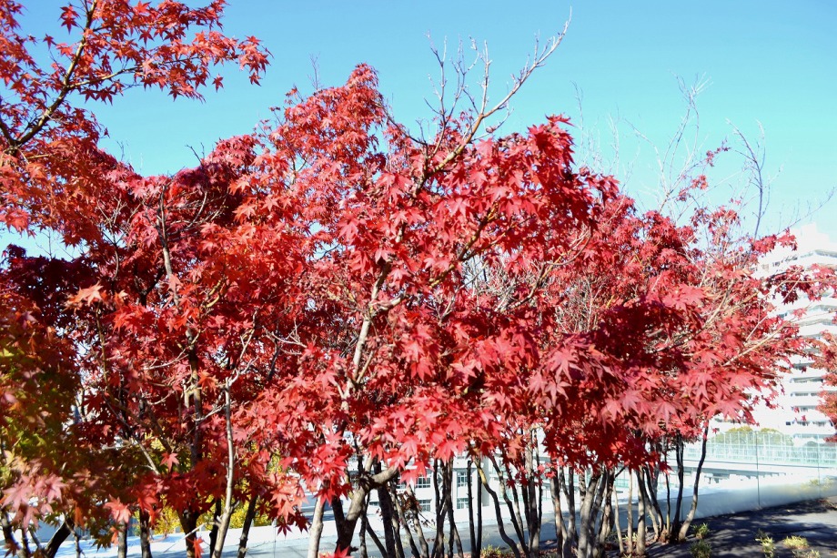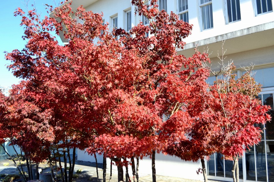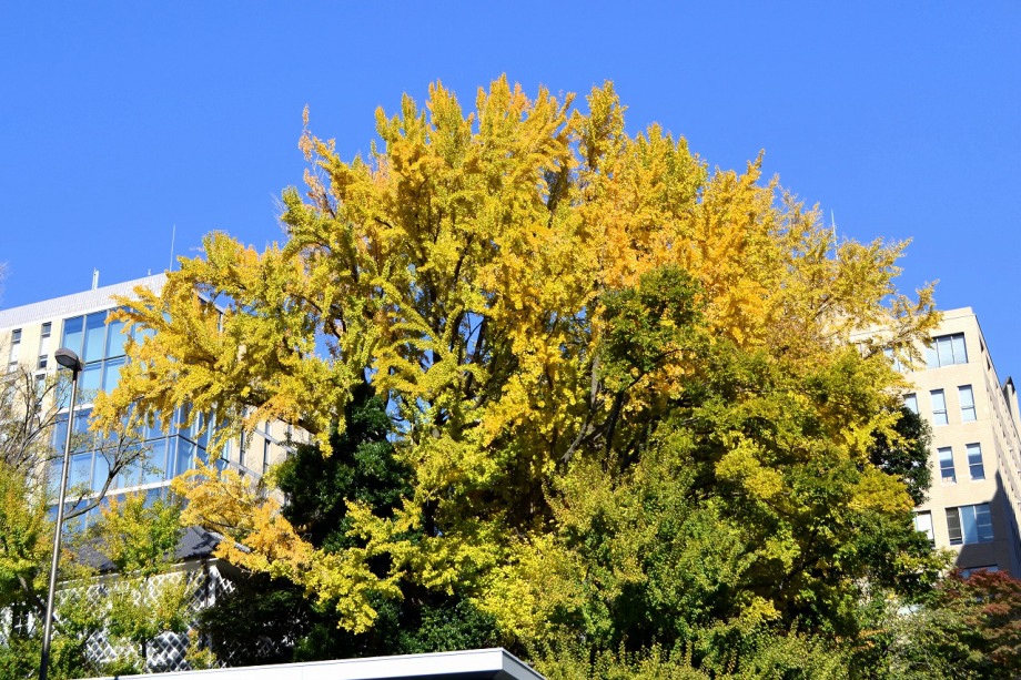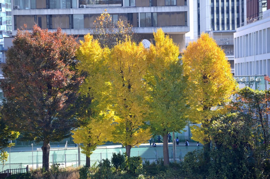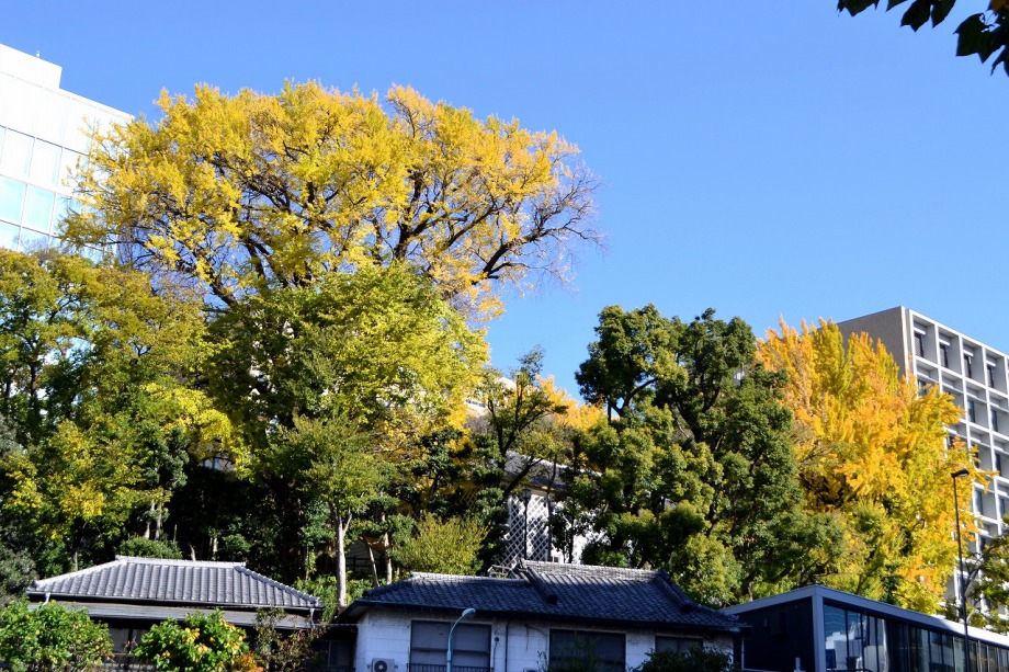 「一言」慶応大学の構内のイチョウやもみじが綺麗になってきました。構内にはもみじがあり、紅葉してきました。まだ、もみじの葉には 青い色が残っているのか濃い赤という感じで、透き通った赤にはなっていません。また、イチョウも黄葉してきました。非常に大きな 木全体が黄色になっている状況ではありませんが、かなり黄色が濃くなってきました。港中学校の桜も紅葉してきました。
