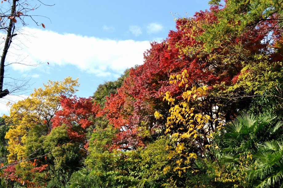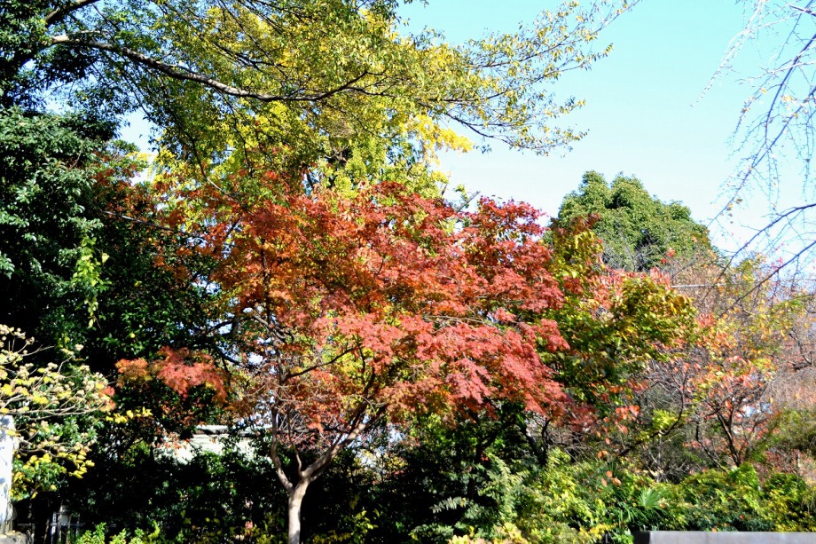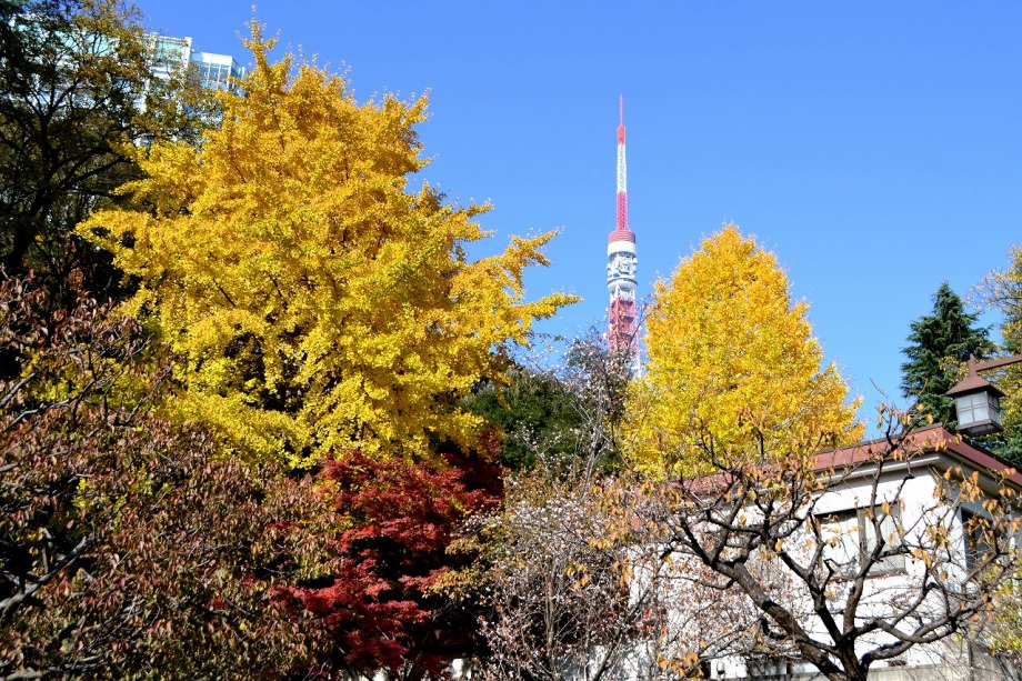 「一言」芝公園のイチョウが黄葉して見頃になりました。大きなイチョウの木の全体が黄葉して輝いる感じがしました。十月桜も満開で 見事でした、増上寺の境内にはもみじが点在していますが、紅葉していて奇麗でした。芝プリンス公園のバラは花の数は少なく なっていますが、紅葉があり、お寺の景色と調和していて面白い雰囲気でした。
