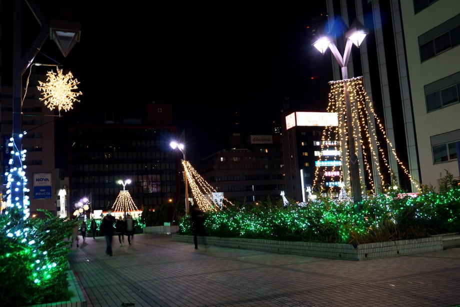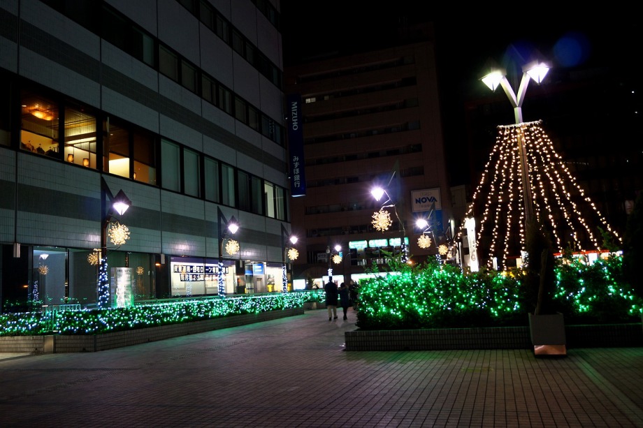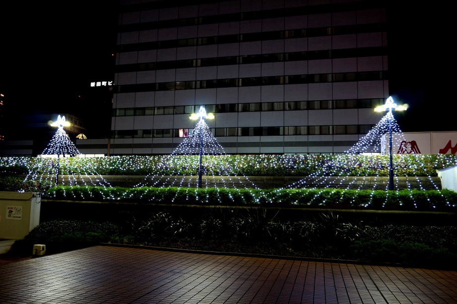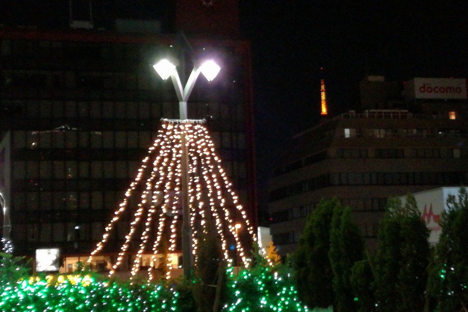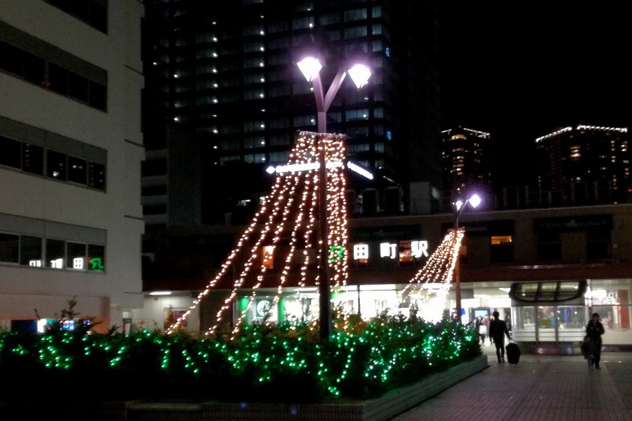 「一言」田町の駅前にイルミネーションが飾られています。派手ではないですが、駅前の広場や道路沿いに色々な形の