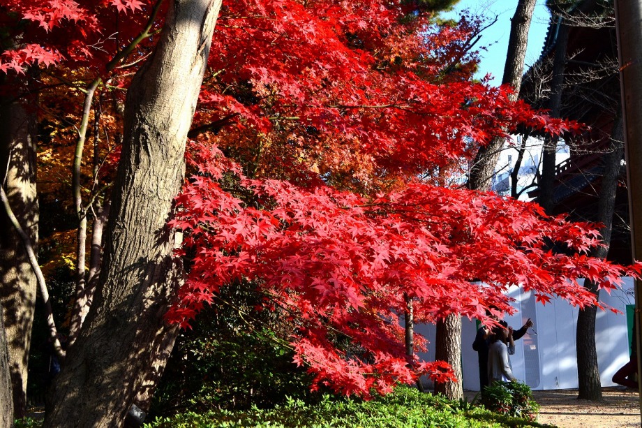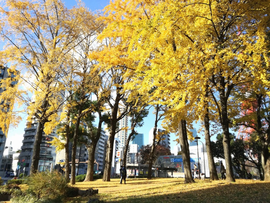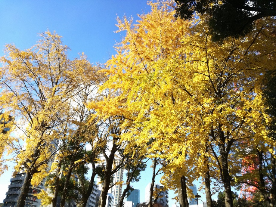 「一言」日比谷公園から帰りに増上寺のもみじや赤羽橋付近のイチョウが見頃になっていましたので、写真を撮りました。 我が家から港中学校のもみじが赤くなり、イチョウが綺麗になっているのが見えましたので、望遠で撮りました。