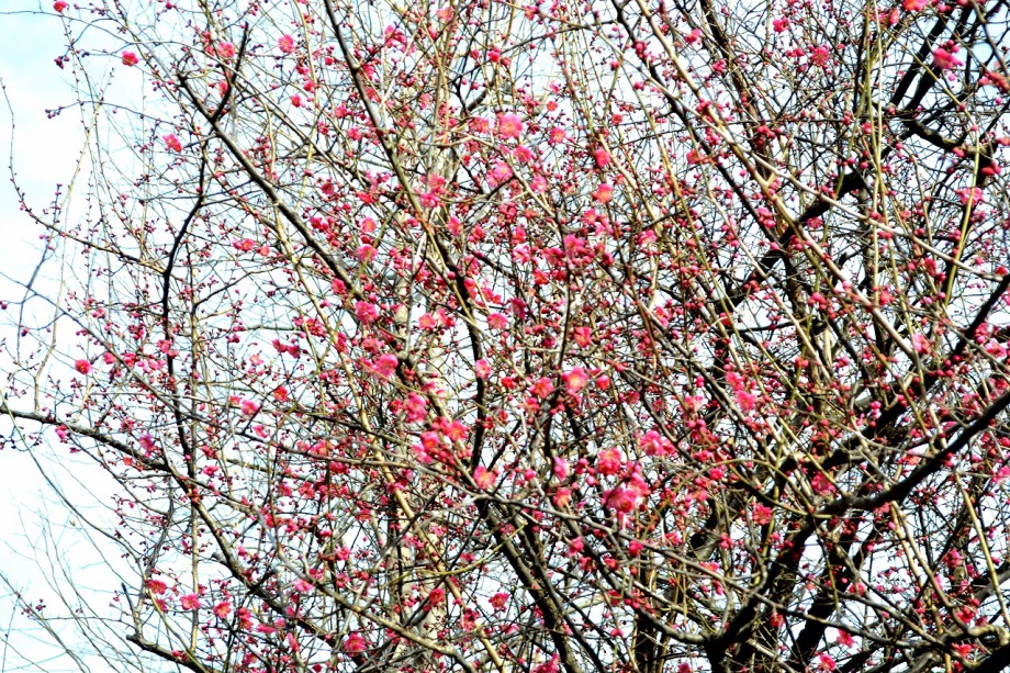 大きな紅梅にたくさんの花が咲いていて、これから綺麗になると感じました。三田台公園の白梅と紅梅も咲き出しています。