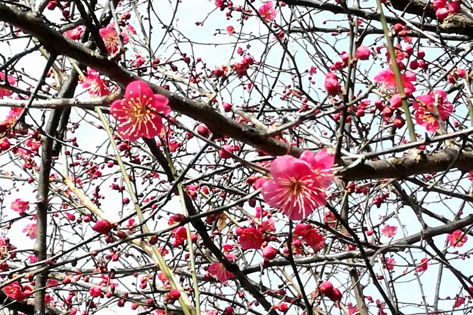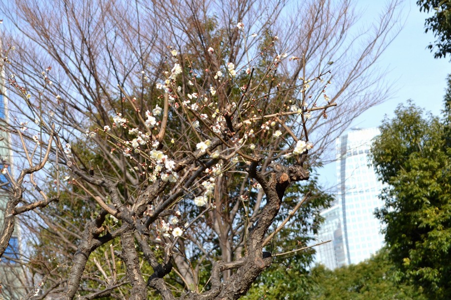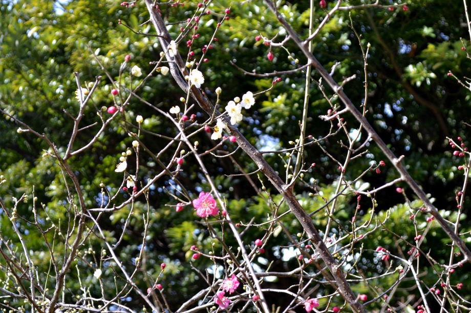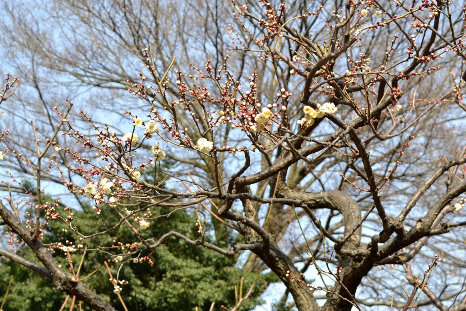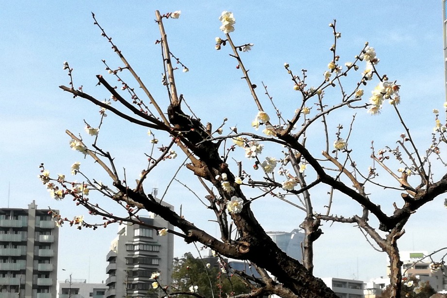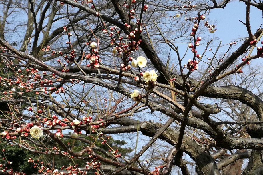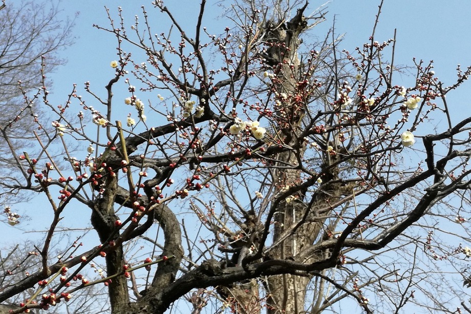 「一言」今日は暖かいというので、三田地域や芝公園の梅の花を見に行きました。三田の亀塚公園の紅梅が咲き始めていました。