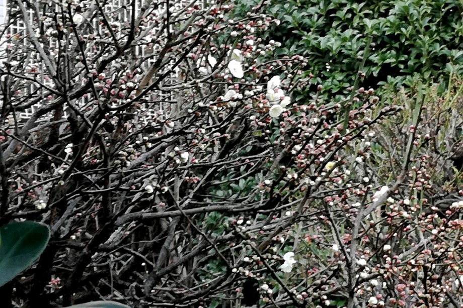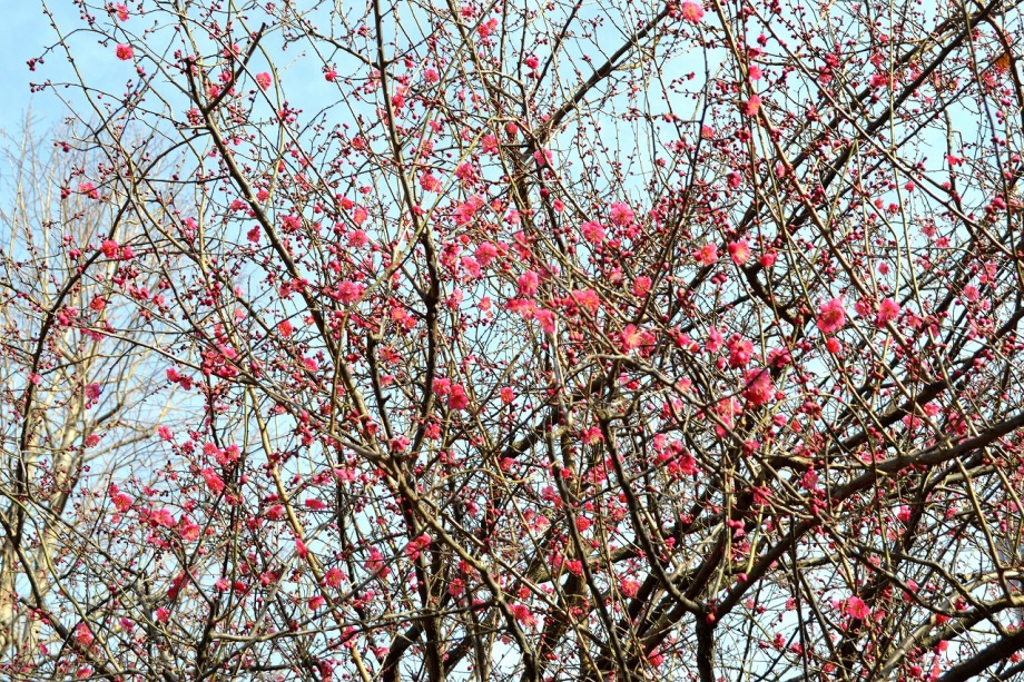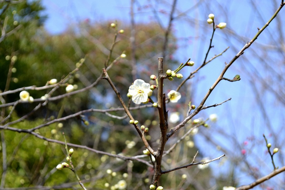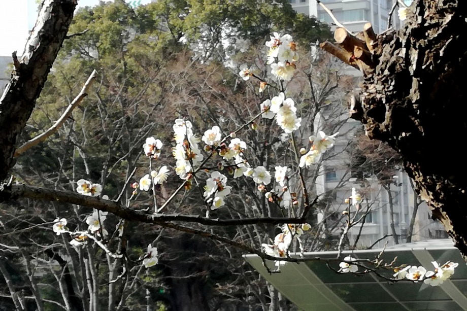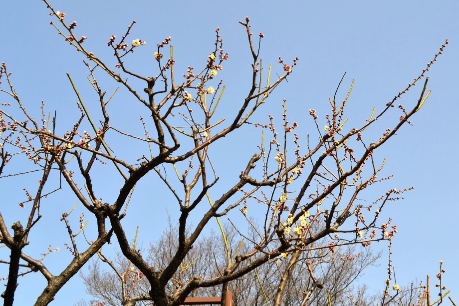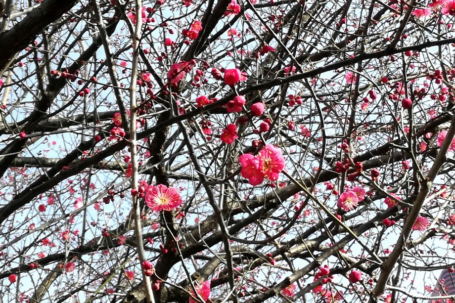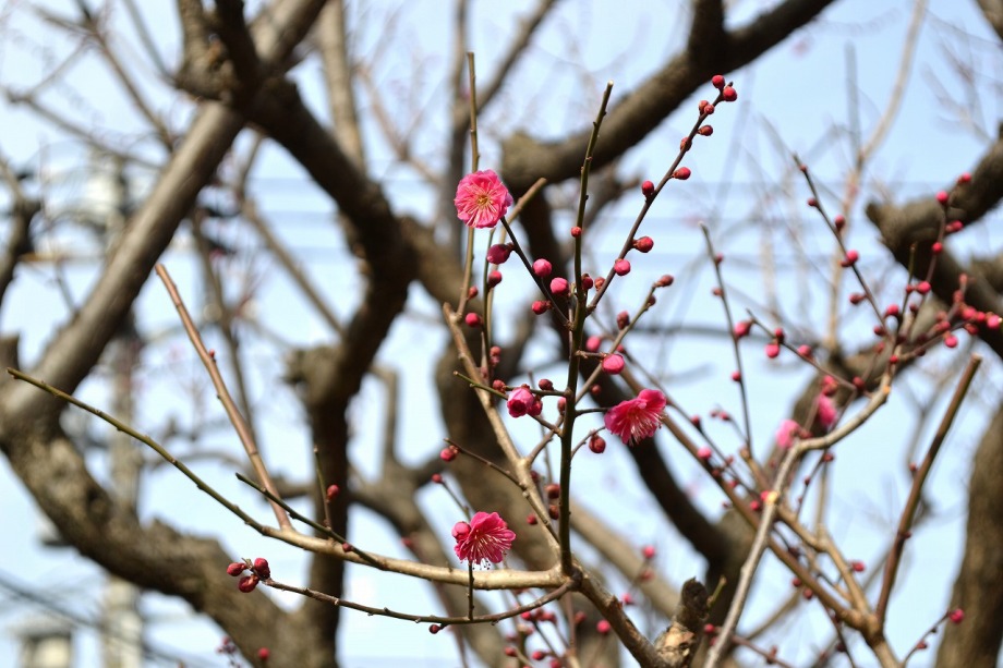 「一言」今日は暖かいというので、三田地域や芝公園の梅の花を見に行きました。三田の亀塚公園の紅梅が咲き始めていました。