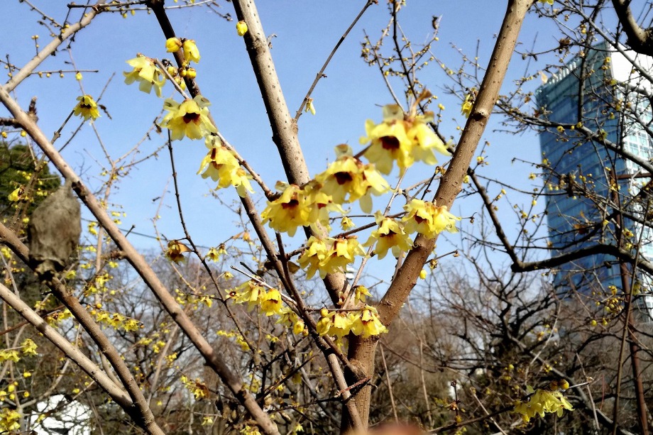 増上寺の椿も綺麗です。ザ・プリンスパークタワーの庭にも白梅や蝋梅が咲き出していました。1週間くらいで見頃になる感じです。