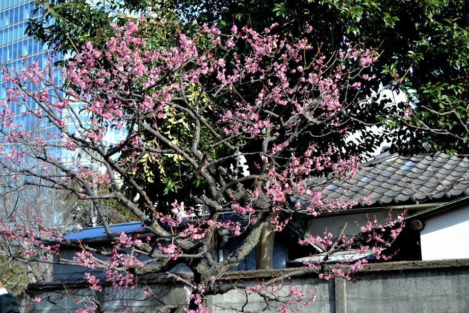 「一言」芝公園の梅林は多くの木に梅の花が咲き出していました。ソシンロウバイの大きな木に花が一杯咲いていました。 三又も咲き出していました。芝東照宮の梅の花も見頃になっています。大きな寒緋桜の木の花がもう少しで咲く感じでした。 プリンスパークホテルの横の道沿いの梅の木も咲き出しました。