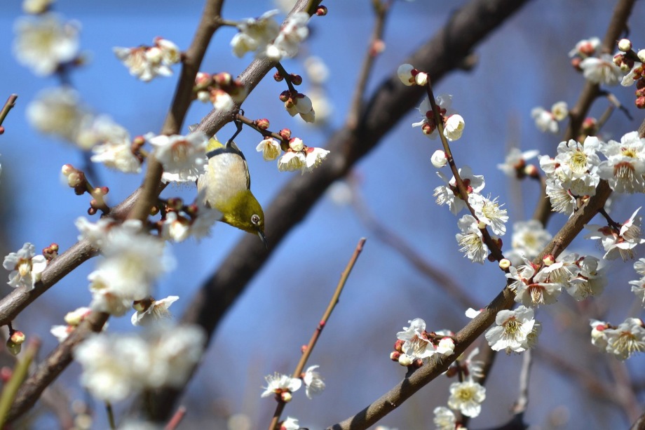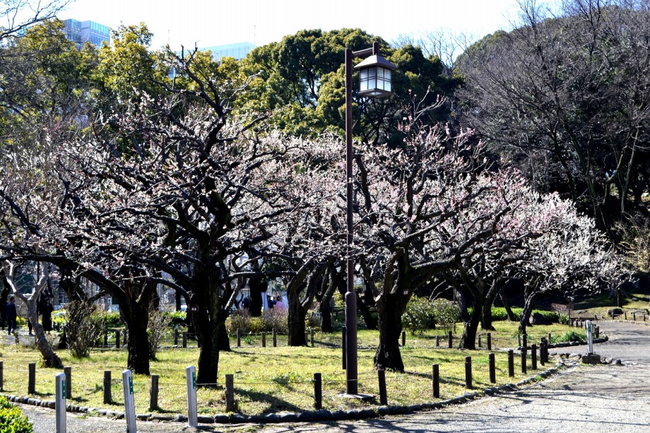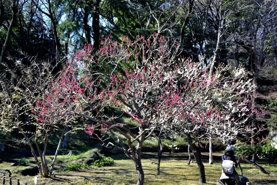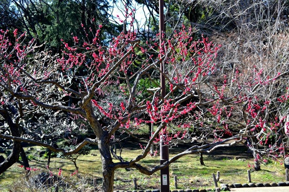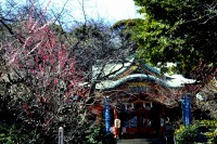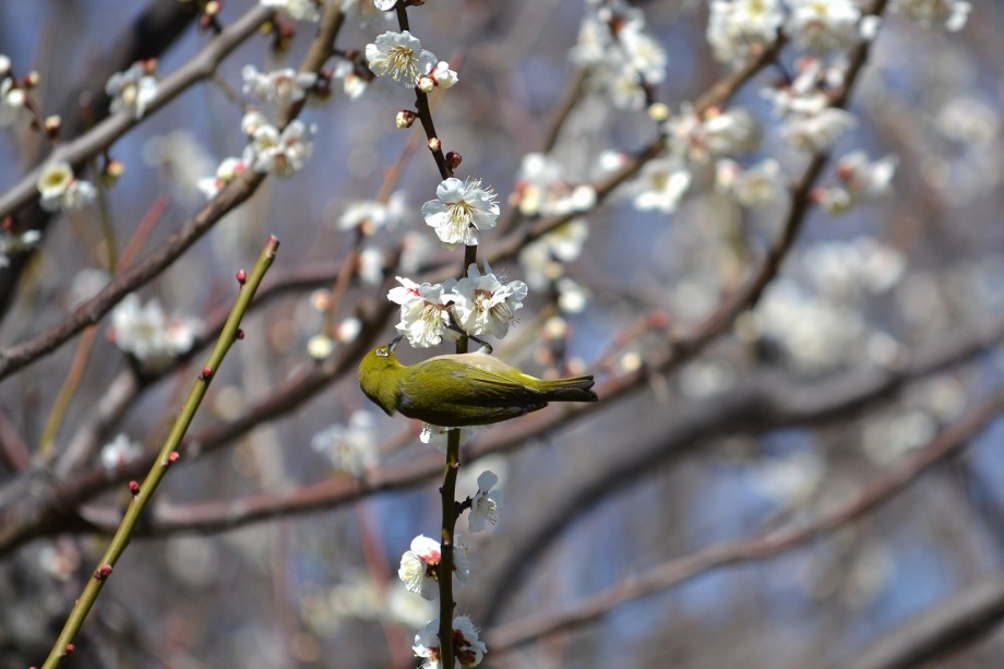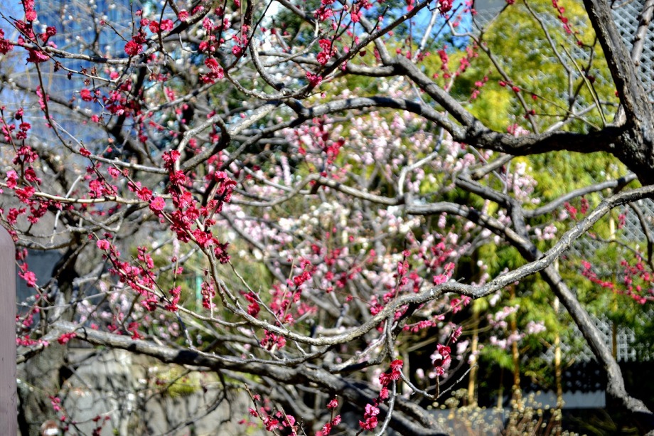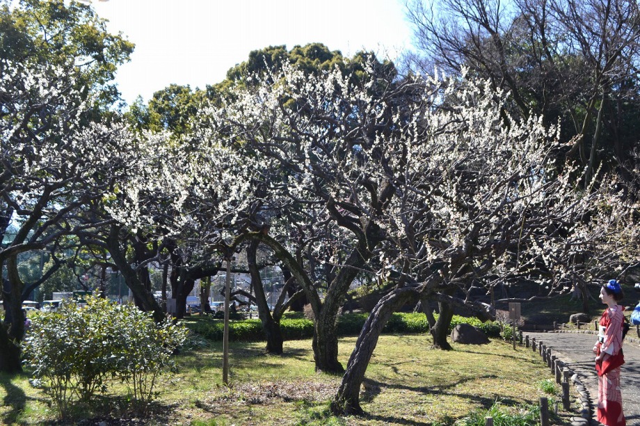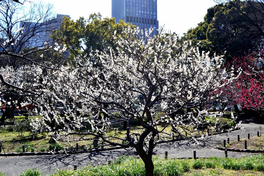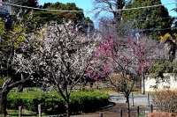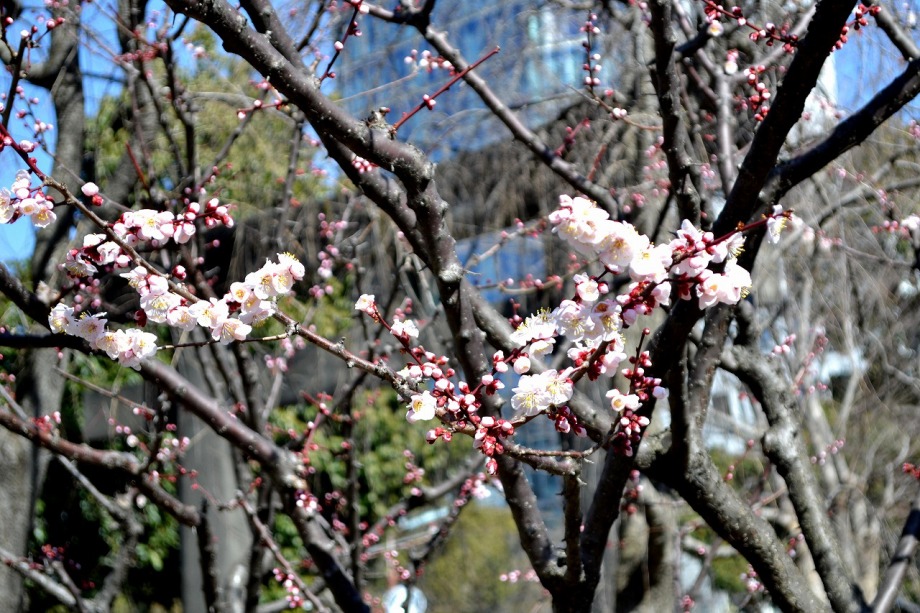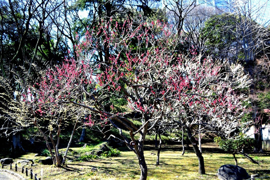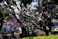 「一言」芝東照宮の寒緋桜が咲き出しました。芝公園の梅園は、白銀の花の銀世界と言われるように、rたくさんの白梅が花盛りになりました。 メジロがたくさん飛んで来ていて梅の花をついばんでいました。濃い赤い色の梅の花も咲いていました。外人の女性が着物を着て写真を 撮っていました。 、白梅