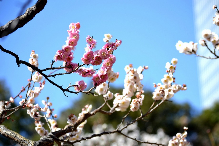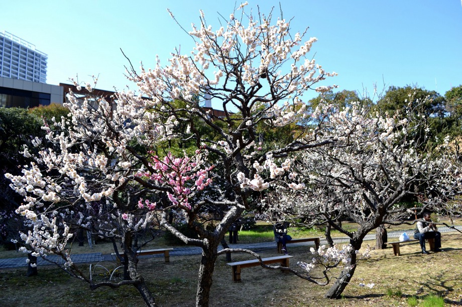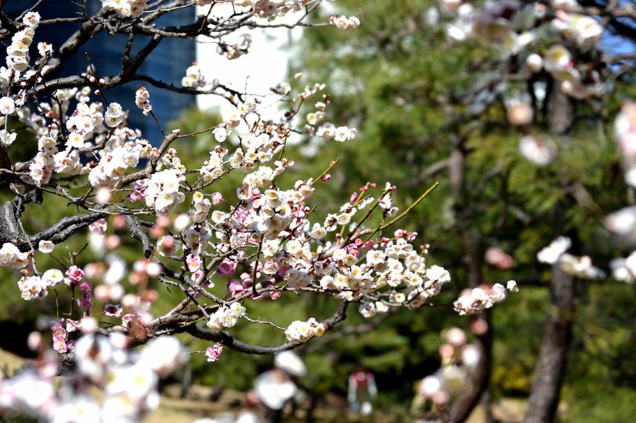 「一言」旧芝離宮に梅の花が見頃になりました。白梅と紅梅が一つの枝から咲いている思いのままにも見頃です。福寿草も見頃です。 池には鴨がたくさん泳いでいました。特に、小さな鴨がたくさんいました。鷺も鴨と一緒に休んでいました。