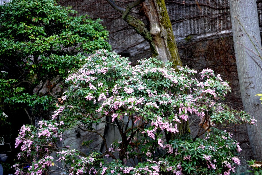 「一言」三田寺町のお寺を回って、お花を見てきました。龍源寺には梅の花は散っていましたが、色々な色の椿や馬酔木などが咲いていました。 明王院の枝垂れの紅梅が見頃でした。少し濃い目のピンクの花をさkせている枝が地面近くまで垂れていて綺麗でした。仙翁寺の白木蓮も 咲き出しました。薬王寺には大きな馬酔木に沢山花が咲いていました。名前は良く分からないが、サンシュユのような黄色い花をいっぱい 咲かせた木がありました。木瓜も咲き出していました。