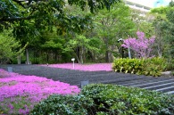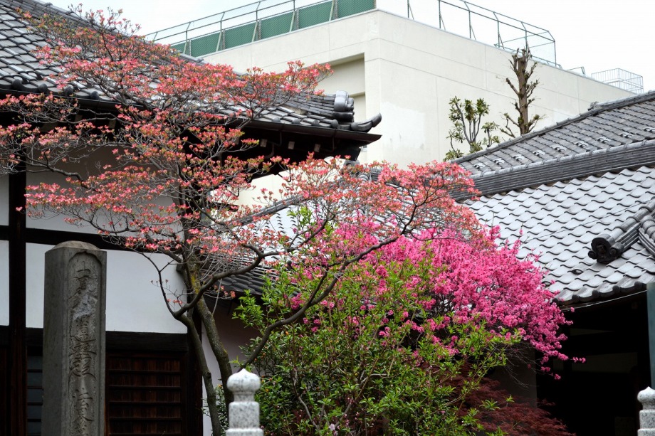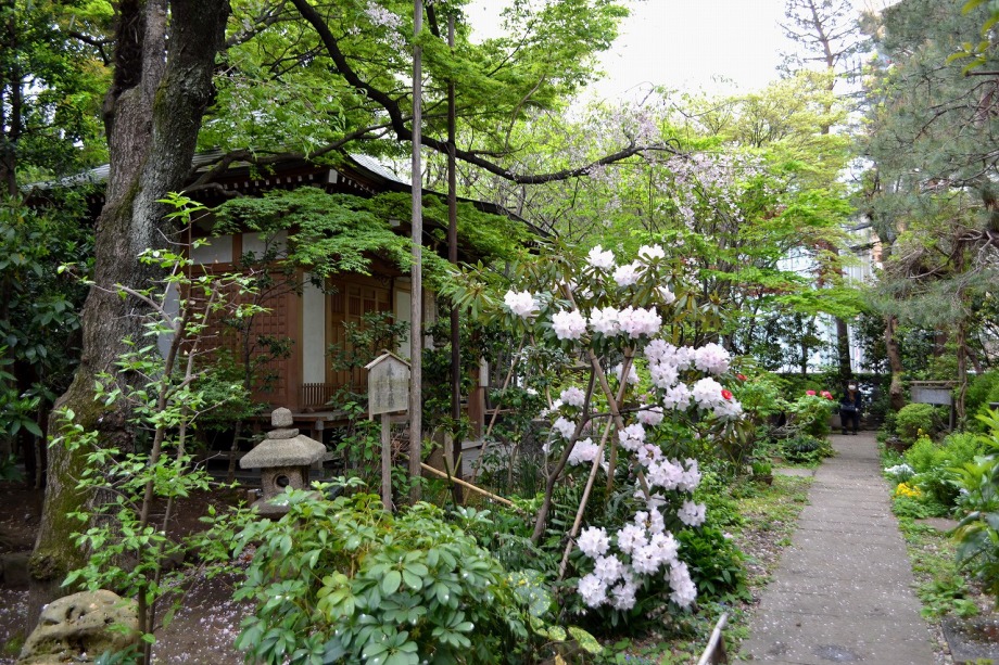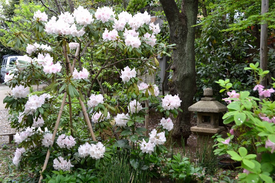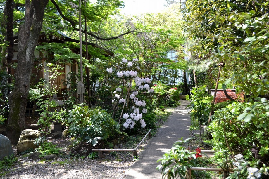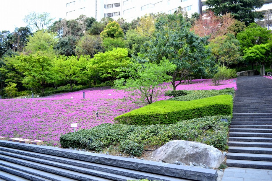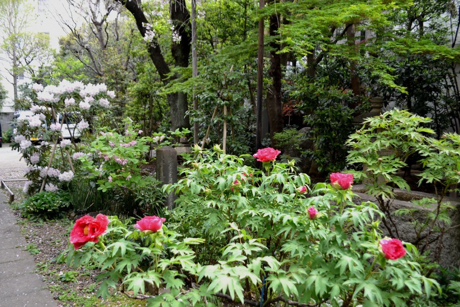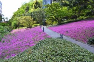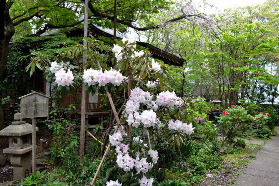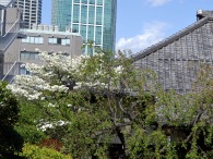 「一言」魚籃坂下の交差点には芝桜が見頃です。白とピンクの小さい花も咲いています。玉鳳寺の本堂の前の八重桜も咲きました。 龍源寺には思いのままの梅がまだ咲いています。白い大きな石楠花や赤い牡丹が咲いています。薬王寺には白とピンクの ハナミズキが満開です。藤の花も伸び始めています。札ノ辻の近くの住友ビルでは芝桜が見頃になっていました。