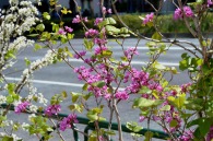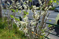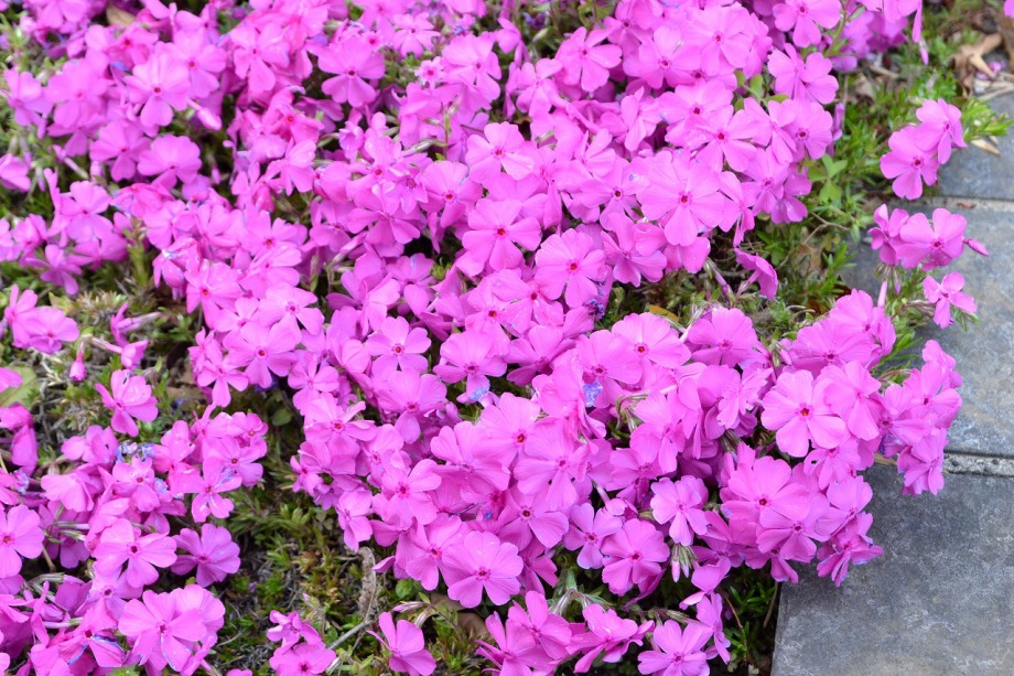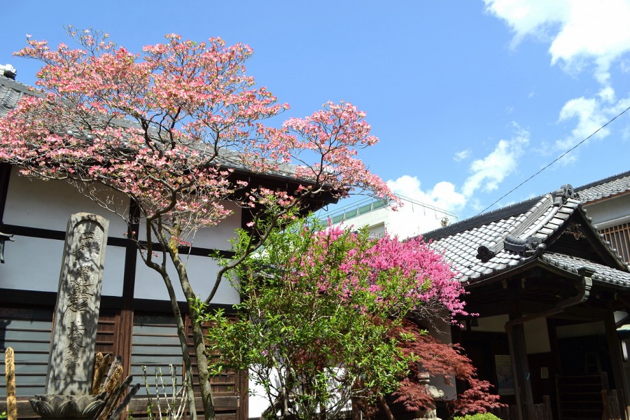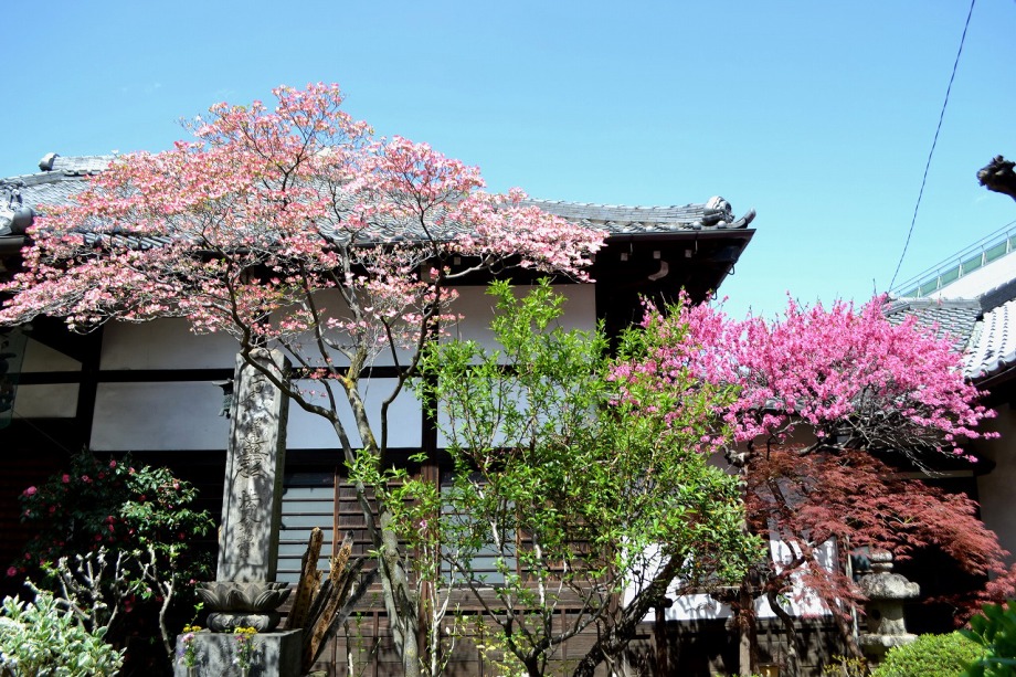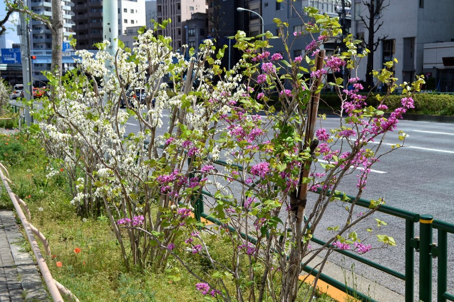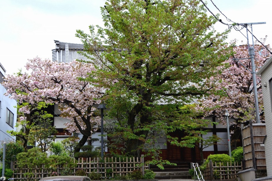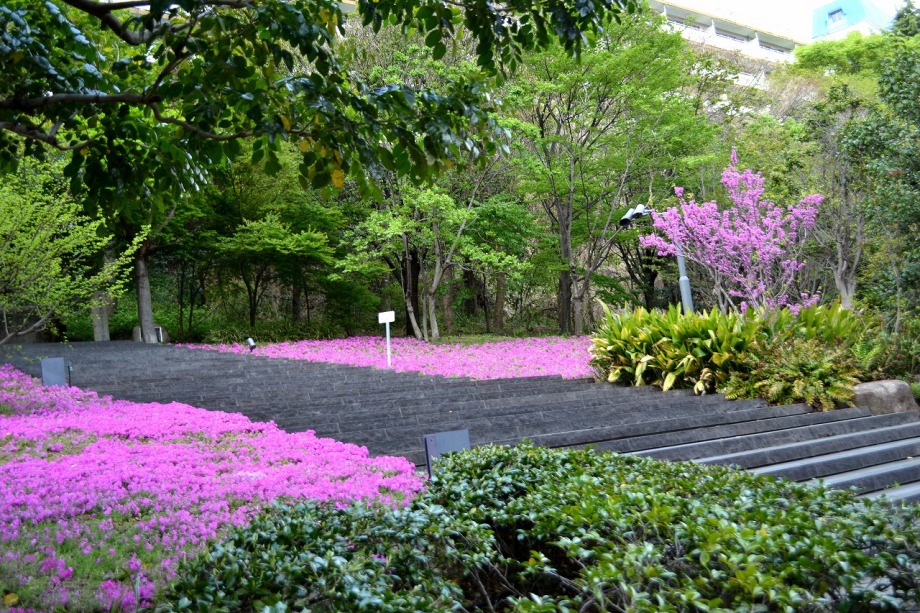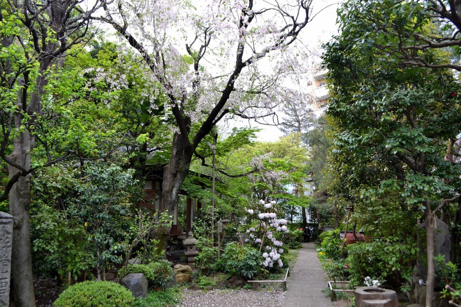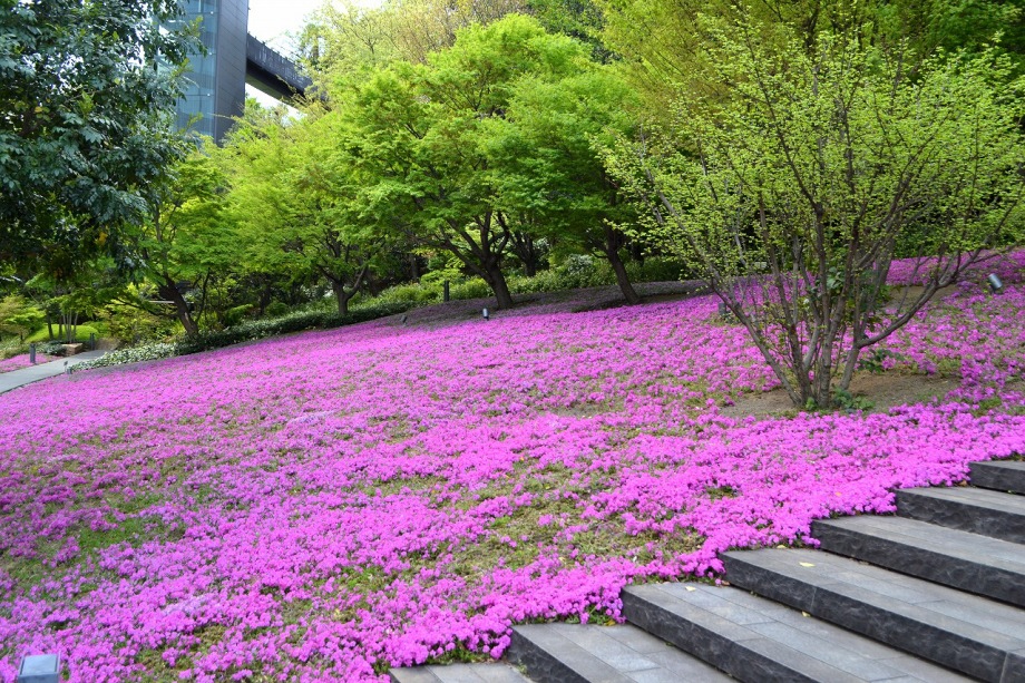 「一言」魚籃坂下の交差点には芝桜が見頃です。白とピンクの小さい花も咲いています。玉鳳寺の本堂の前の八重桜も咲きました。 龍源寺には思いのままの梅がまだ咲いています。白い大きな石楠花や赤い牡丹が咲いています。薬王寺には白とピンクの ハナミズキが満開です。藤の花も伸び始めています。札ノ辻の近くの住友ビルでは芝桜が見頃になっていました。