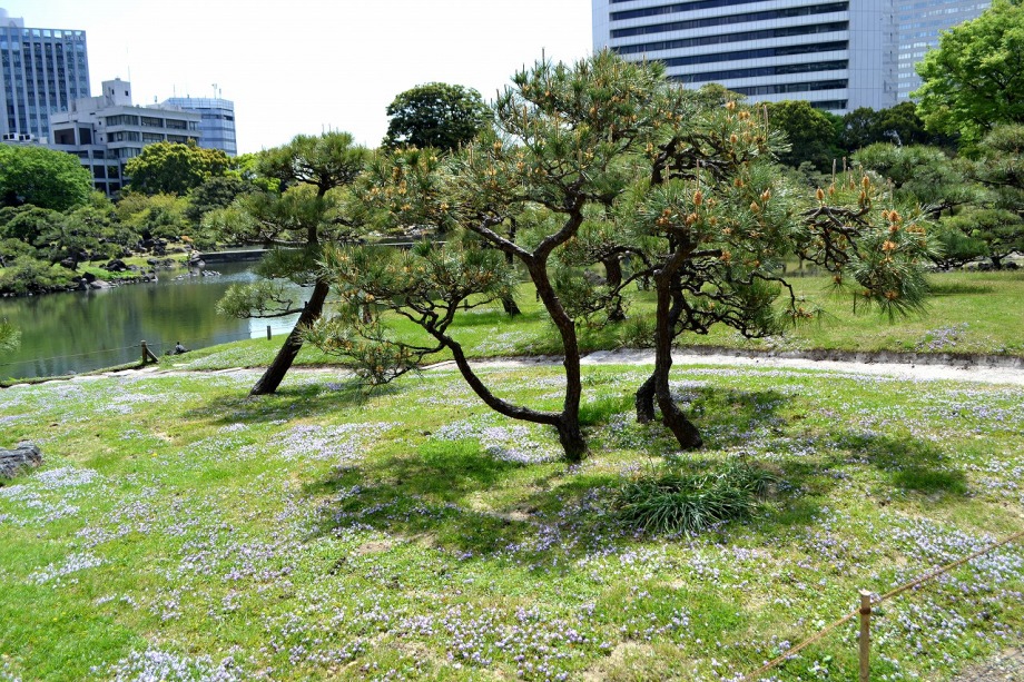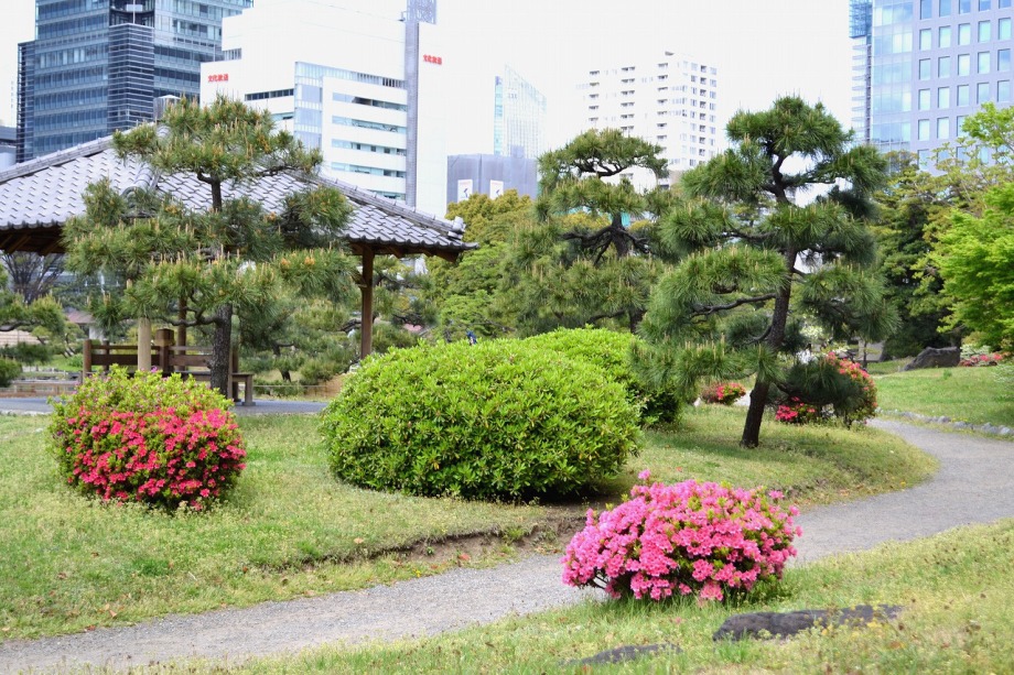 「一言」芝離宮のソメイヨシノは散りましたが、八重桜やボタン桜、御衣黄桜などが満開です。丘のボタンも咲き出しました、 ボタンの奥に植えられているたくさんの山吹が満開で綺麗です。ツツジもあちこちで咲いています。モミジのッ新緑が綺麗です。 むらさきしらんもまとまって咲いています。