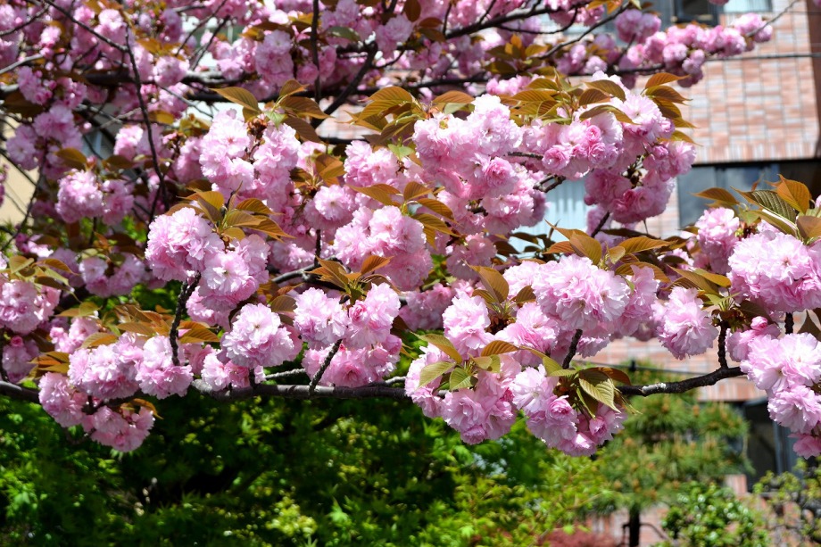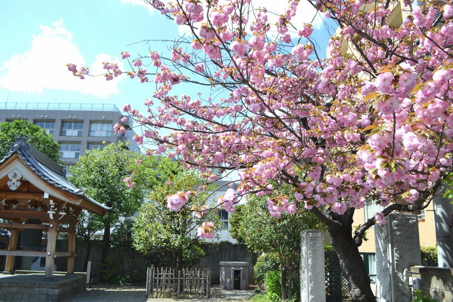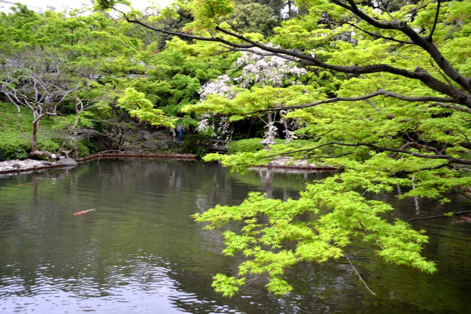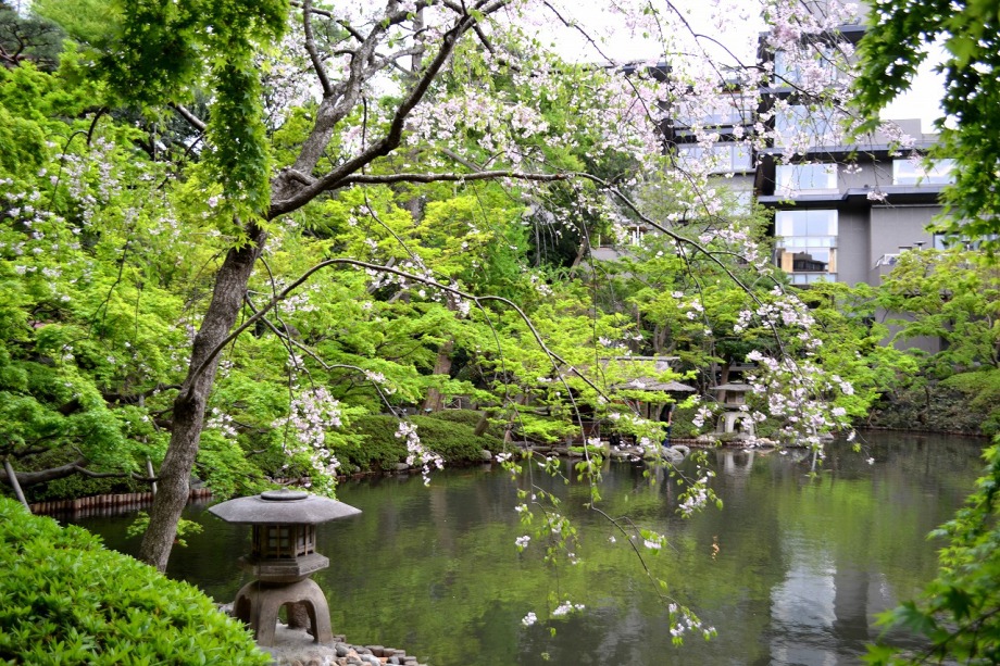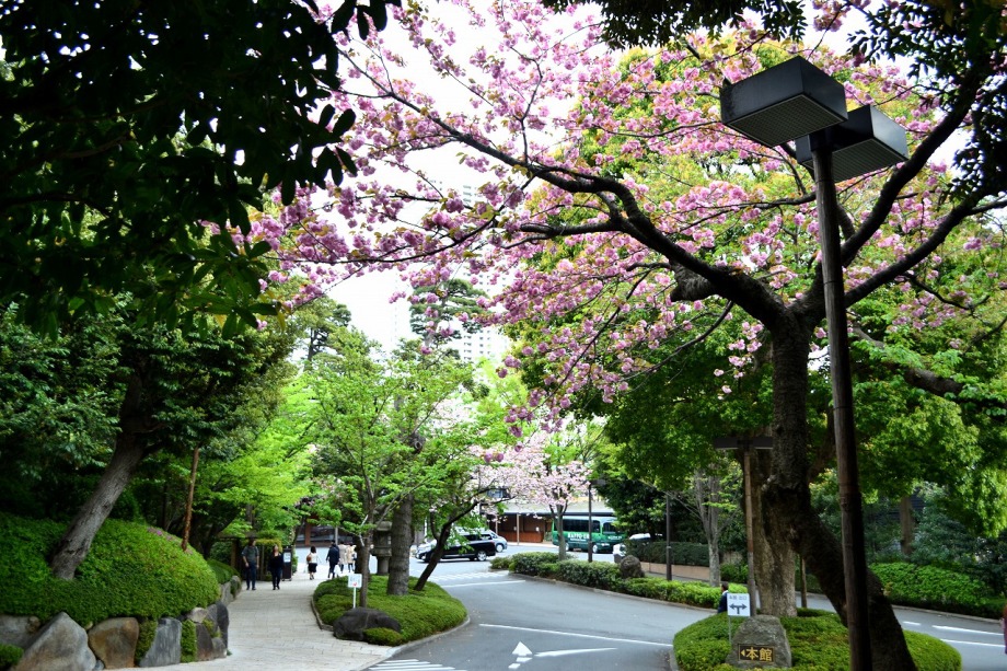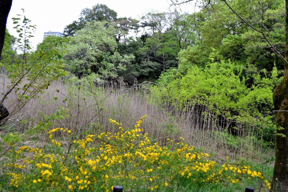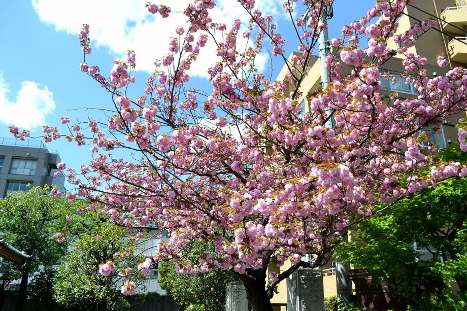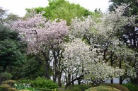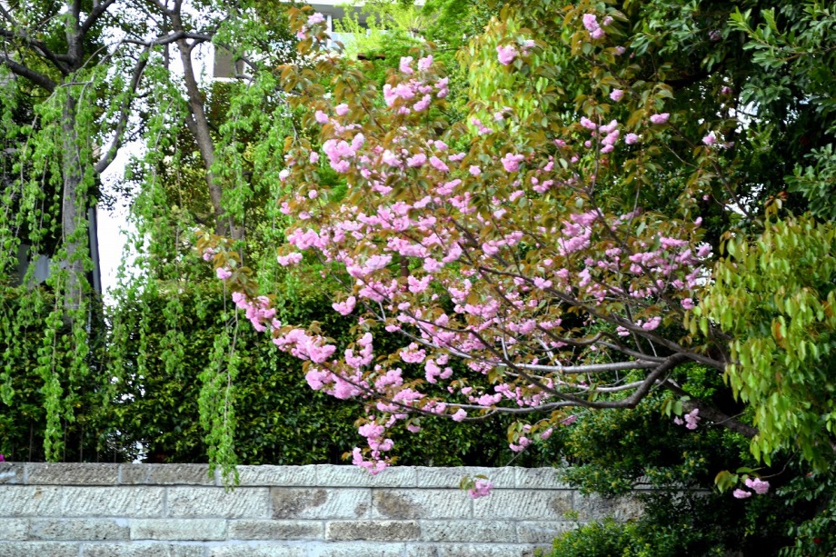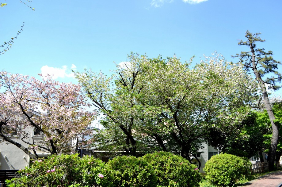 「一言」八芳園もボタン桜が庭園に調和して綺麗です。新緑がさわやかです。東大医科研の大きな八重桜やボタン桜が満開で見事です。 證誠寺の入り口のボタン桜が満開になりました。白金遊園には姫リンゴが白い花をいっぱい付けています。自然教育園では ヤマブキソウが見頃ですが、新緑も見事です。いちりんそうやにりんそうがたくさん咲いています。