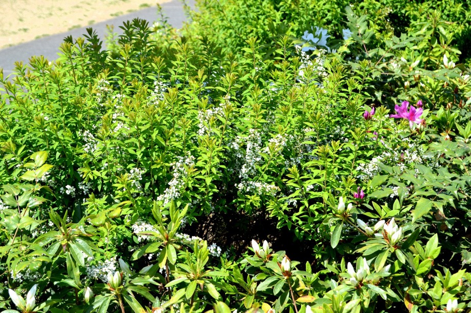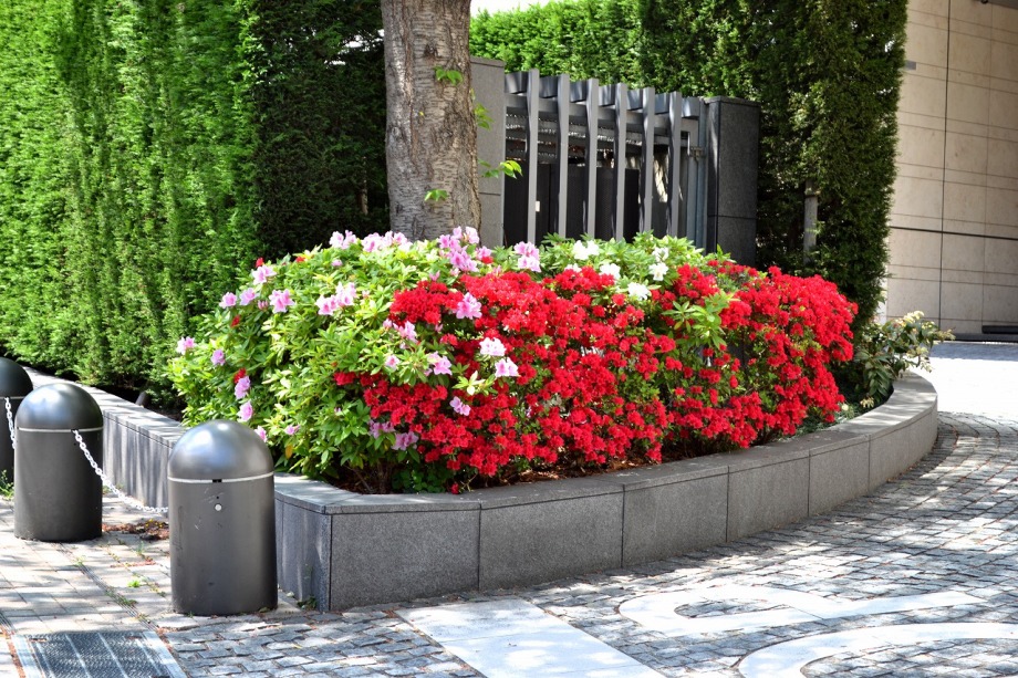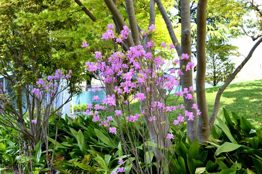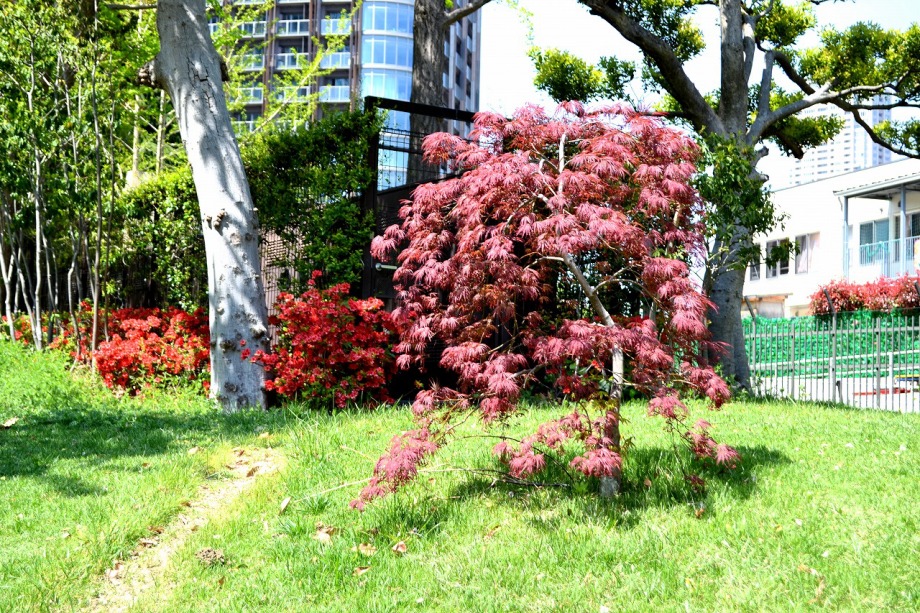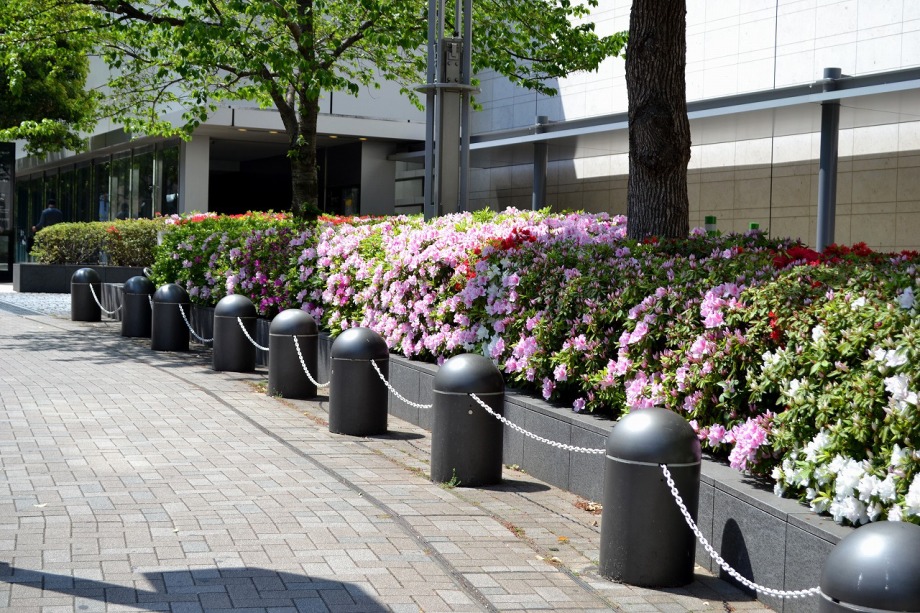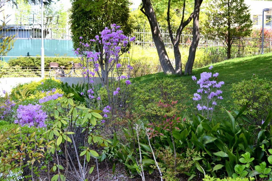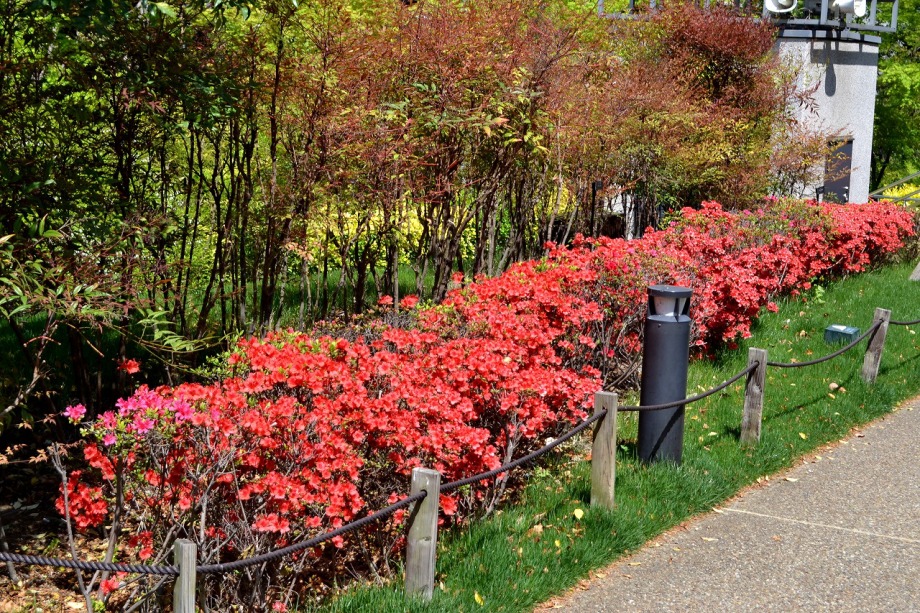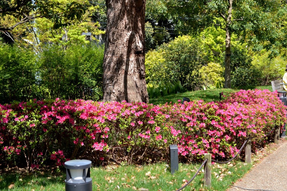 「一言」六本木のミッドタウン・ガーデンと檜町公園に行ってきました。今年は暖かい日が続いたので、お花が急に咲き出して、 色々な花が例年より早く咲いています。赤いツツジは満開になっています。白いツツジはこれからという感じです。ミッド タウン・ガーデンには色々な草花が花を咲かせていますが、名前はほとんど分かりません。檜町公園の藤も咲き出して いました。シャガや山吹もまだ咲いています。数は多くはありませんが、ツツジが綺麗でした。