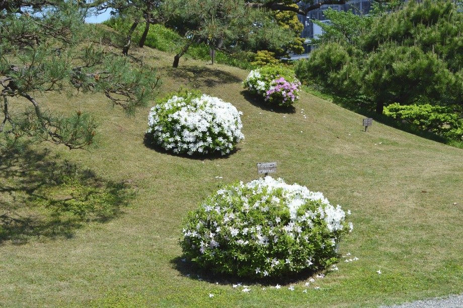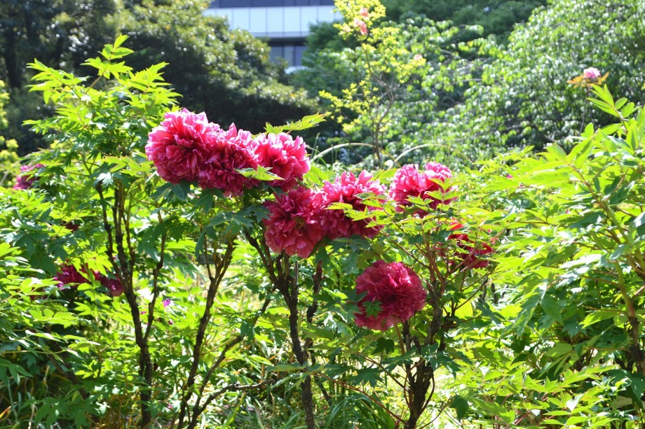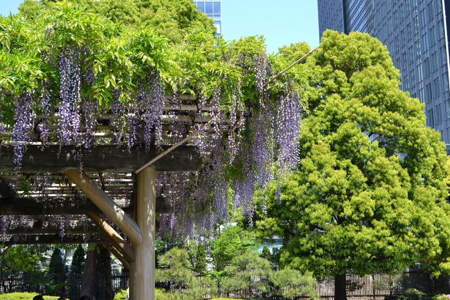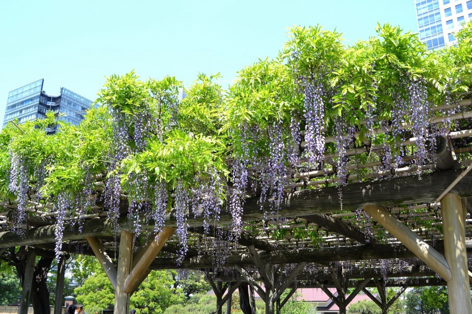 「一言」旧芝離宮の藤の花が見頃になっています。今年は非常に早く咲いた感じです。アヤメやムラサキシラン、シャリンバイなど色々な花が 咲いています。まだ、ハナミズキも白い花をつけています。牡丹の丘には色々な色の牡丹が咲いて楽しめます。形の良いツツジがお庭 のあちこちに再提案す。ハルモミジも新緑に合って綺麗です。