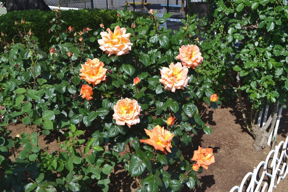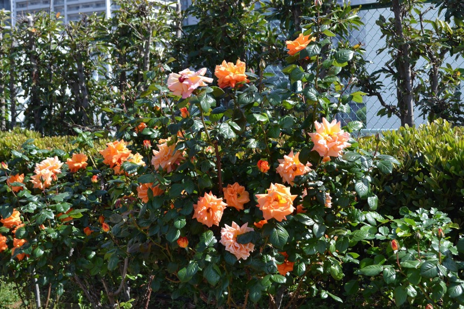 「一言」芝浦のテニス場のバラを見に行きました。今年の暖かさのために既にたくさんのバラが咲いていました。ピンクや黄色、白色などの バラの花が咲いていて綺麗でした。例年、テニス場より遅く咲く芝浦中央公園のバラも既に咲いていました。バラの手入れをしている 人も驚いていました。花を間引くことも出来ない程、早く咲いたいということでした。早く咲きましたが、どの花も綺麗でした。