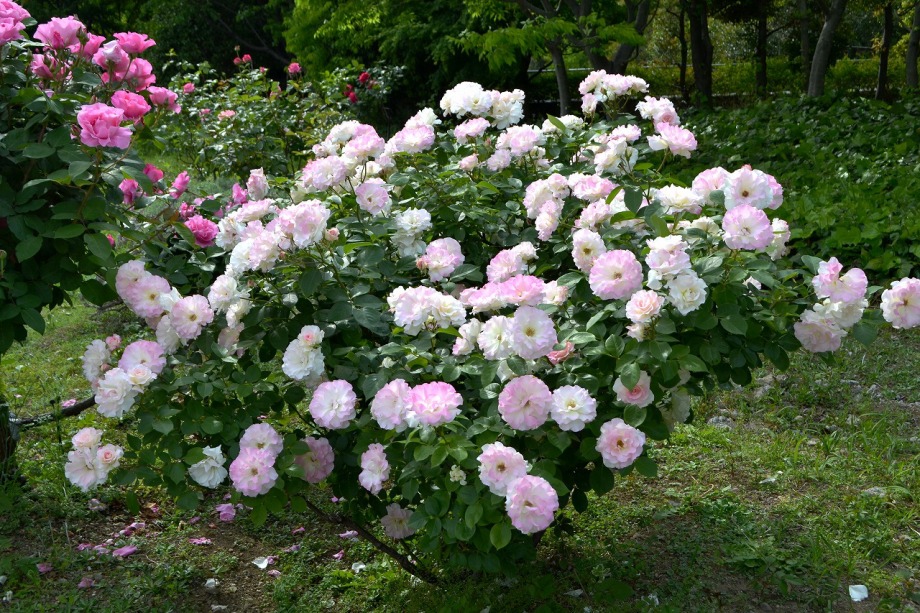 「一言」芝プリンス公公園のバラがもう満開になりました。今年は気温が高くなったので、色々な花が一斉に咲いた感じがします。 公園の入り口には面白い花が咲いていました。花の写真が多いので、固まりで咲いている写真と一輪づつ花が咲いている 写真を分けて掲載することにしました。