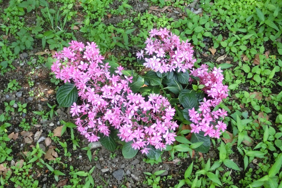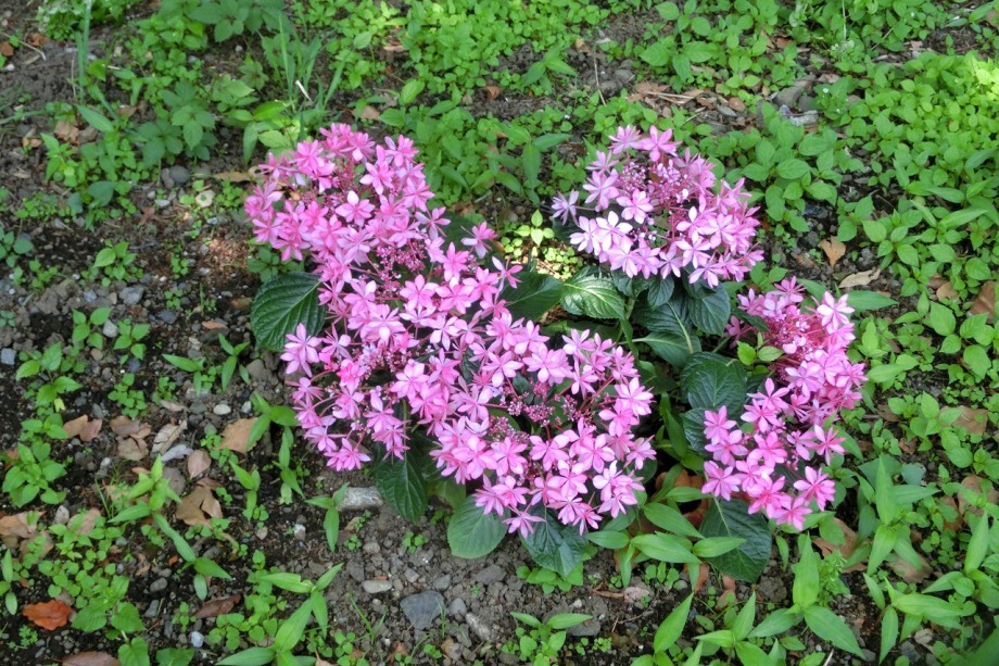 「一言」三田4丁目の明王院にガクアジサイが咲き出しました。仙翁寺のツツジはまだ見頃です。魚籃坂交差点の近くにも ガクアジサイが咲き出しました。三田台公園の横にはブラシノキには赤い花がたくさん咲いています。證誠寺には ザクロやバンマツリの花が咲いています。高輪公園には大きなヤマボウシの木に白い花が咲いています。高輪一丁目 の空き地にはピンク色の花が点々と咲いています。