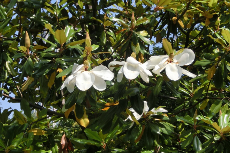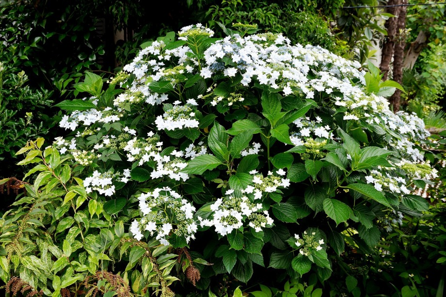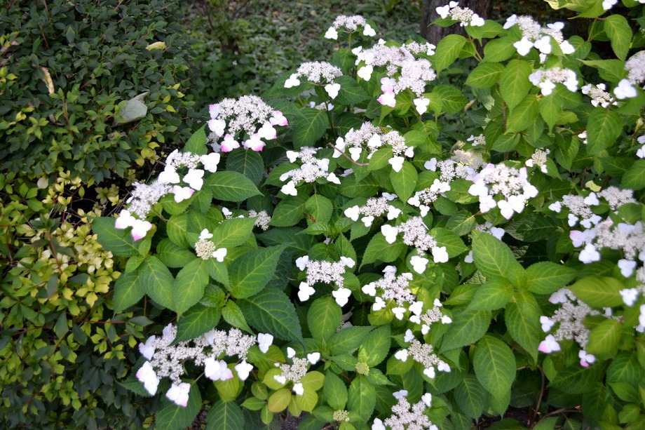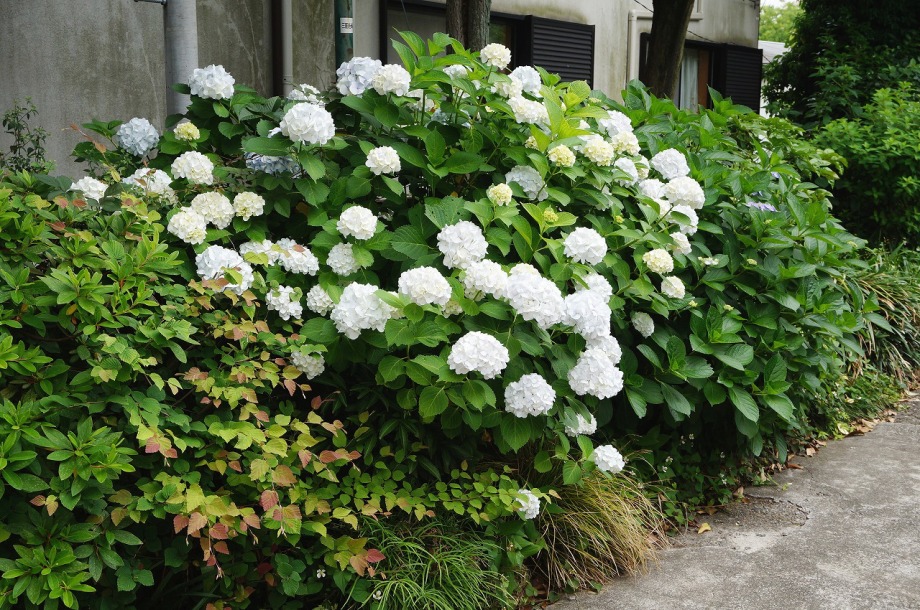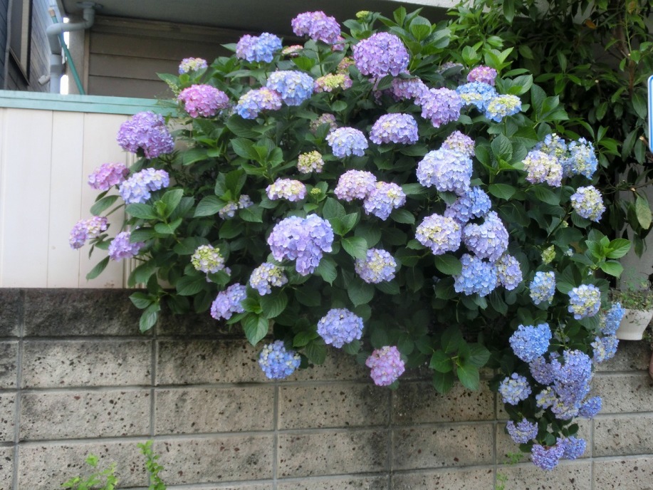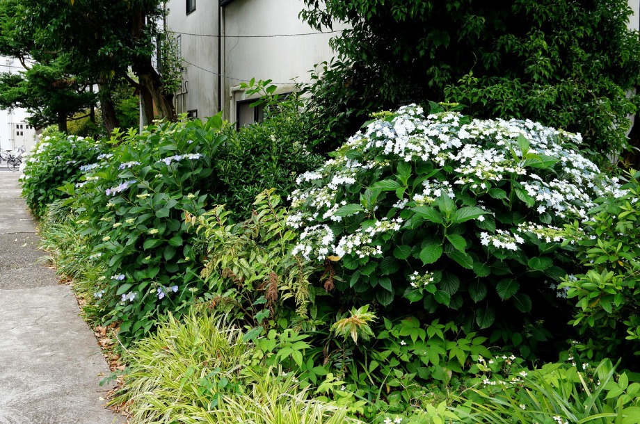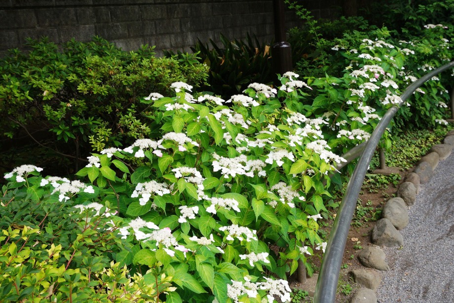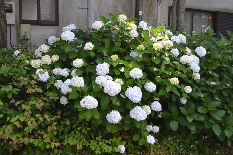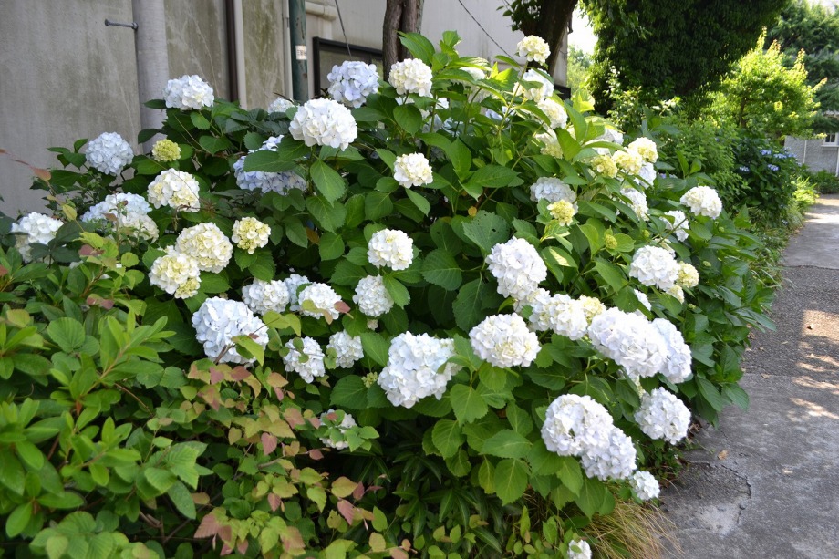 「一言」亀塚公園にはタイサンボクの白い大きな花が咲いています。ビヨウヤナギ゙も咲いています。三田台公園にはガクアジサイが多く咲いています。 三田台公園の前の家には大きなアジサイの花が咲いています。教会の庭にはアジサイやバラなど色々な花が咲いています。