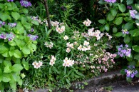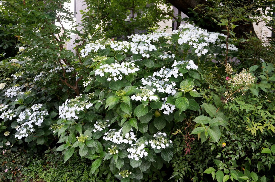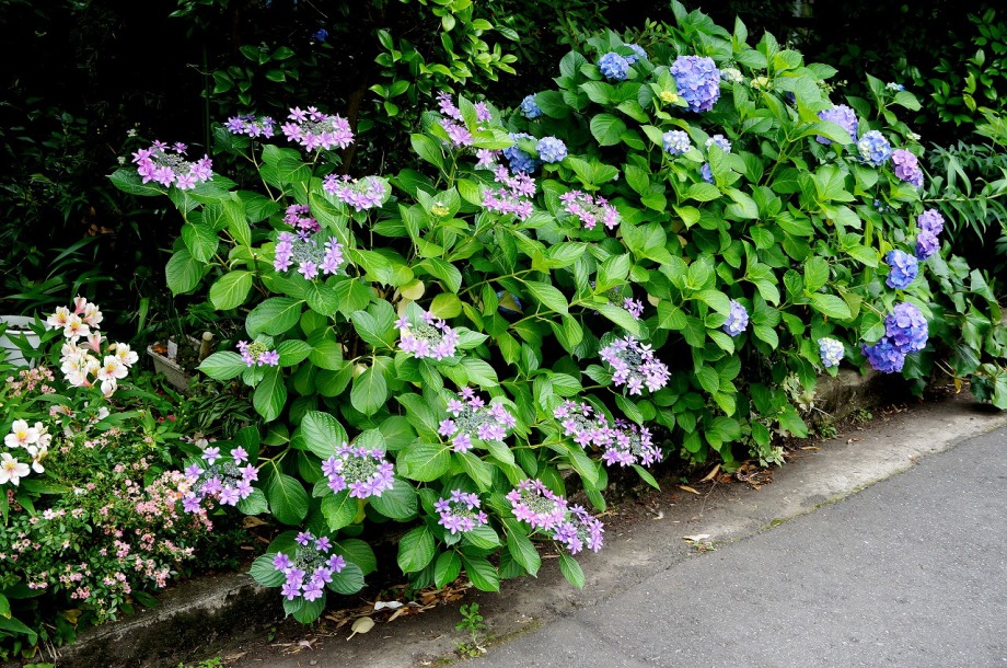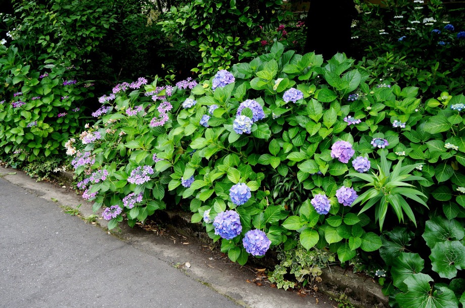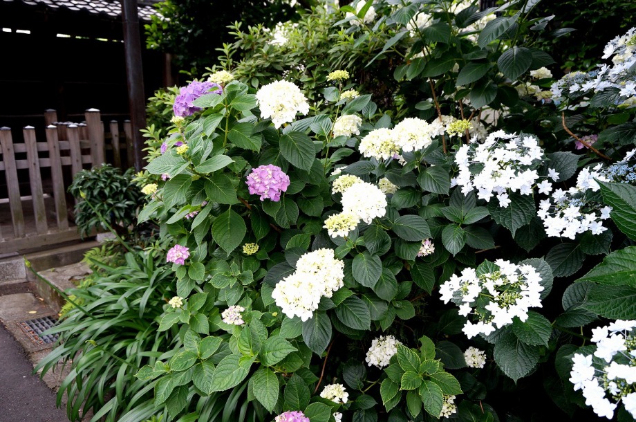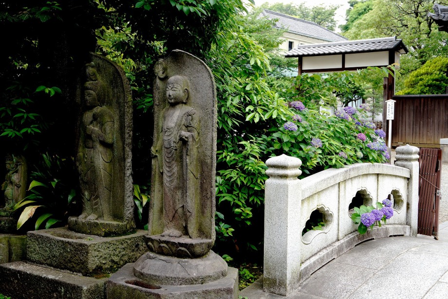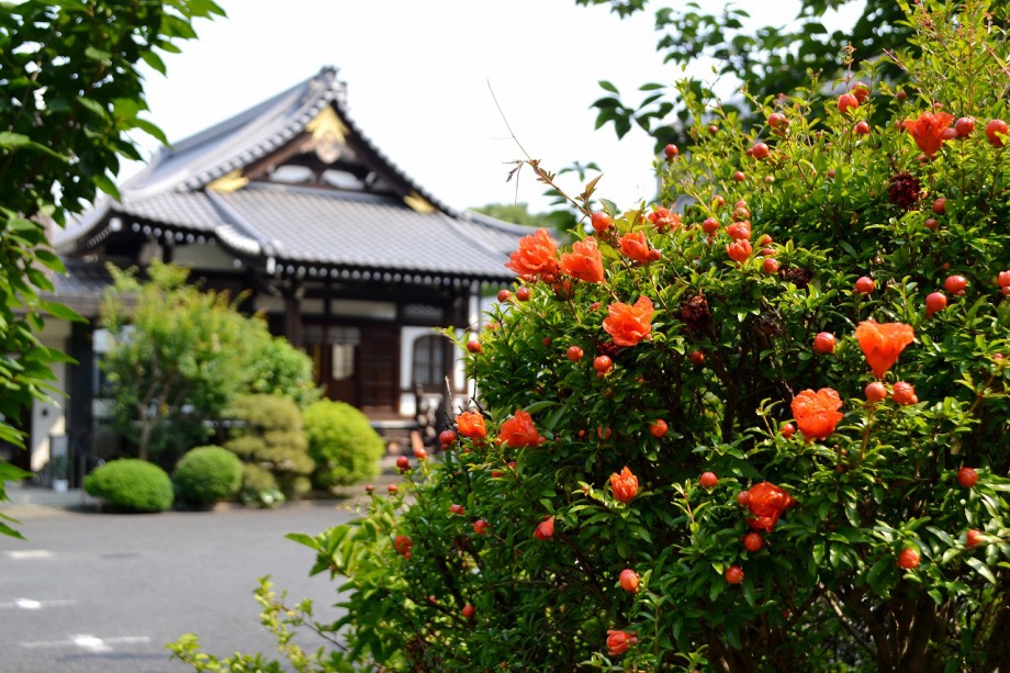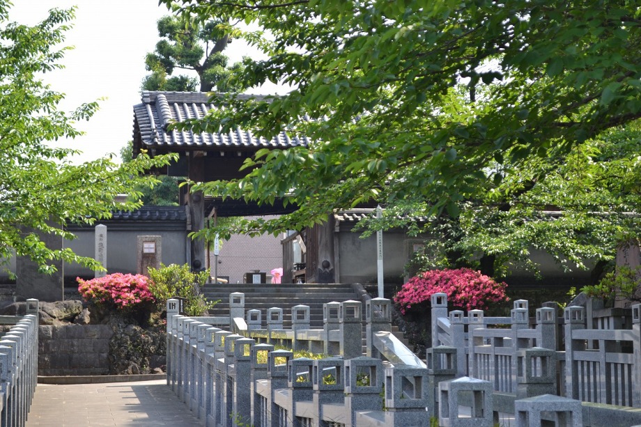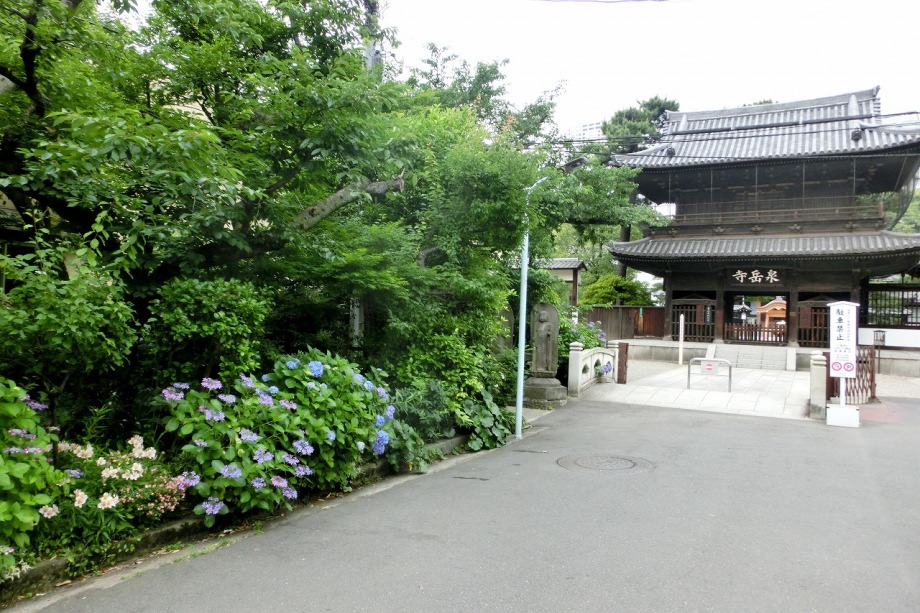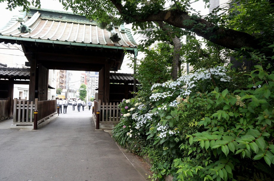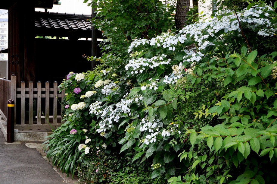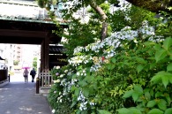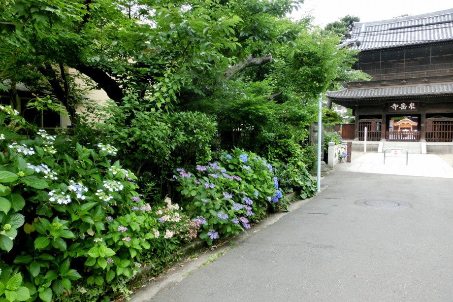 「一言」泉岳寺の境内にはサツキが咲いていました。門の前にはモミジの新緑が綺麗でした。参道には色々な種類のアジサイの花が咲いています。 伊皿子坂の道沿いには綺麗なアジサイが咲いています。證誠寺にはザクロの花がたくさん咲いています。