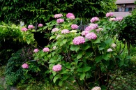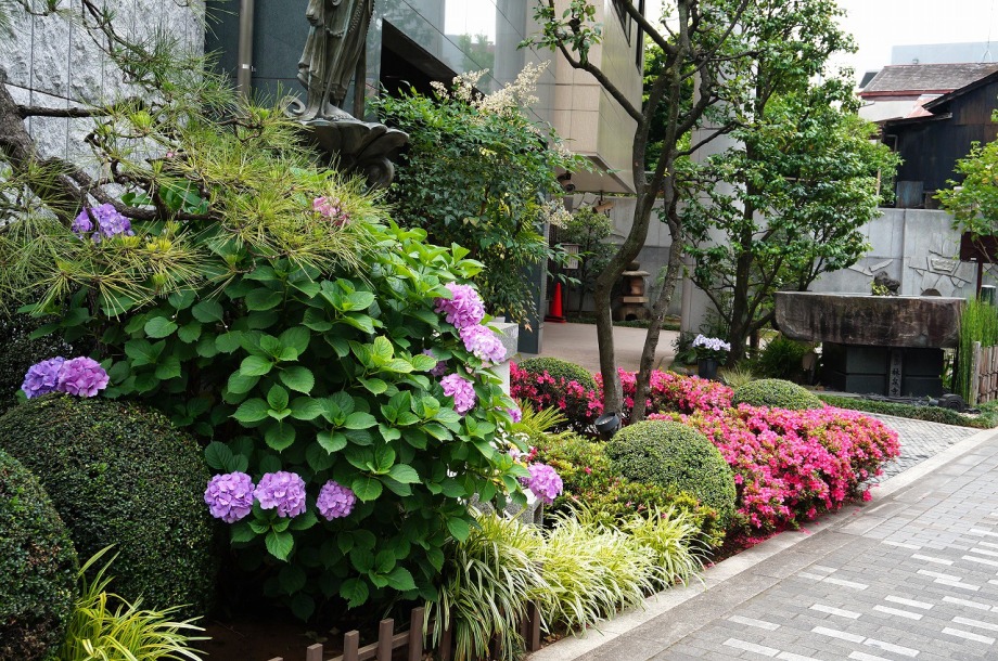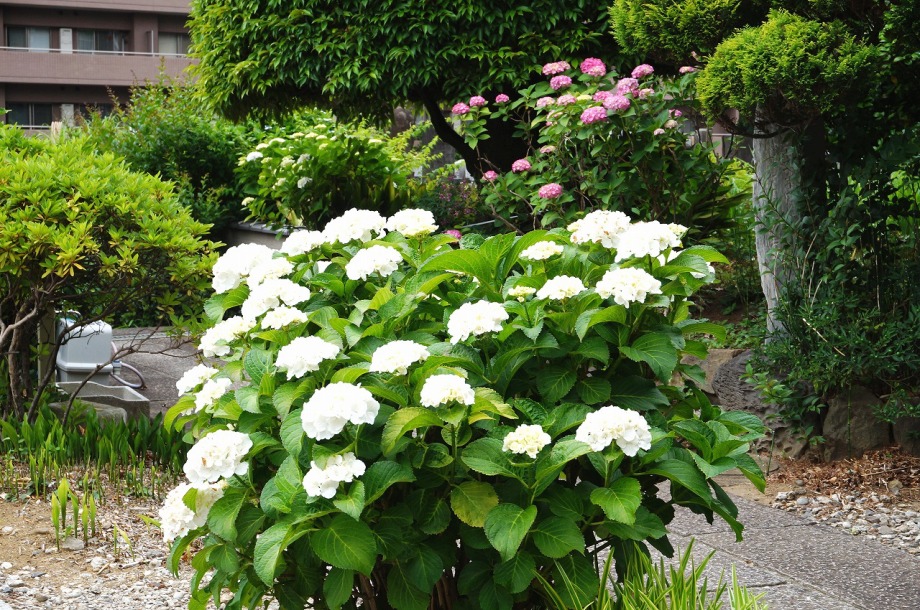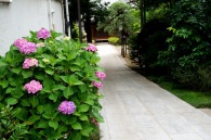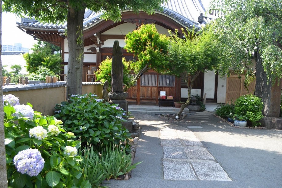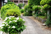 「一言」三田寺町の多くのお寺にはアジサイが咲いています。林泉寺にもアジサイがさいていますが、綺麗なバラも咲いていました。 願海寺はトラペットフラワーや萩の花が咲いています。龍源寺にもアジサイが咲いています。生垣からは綺麗な花が見えました。