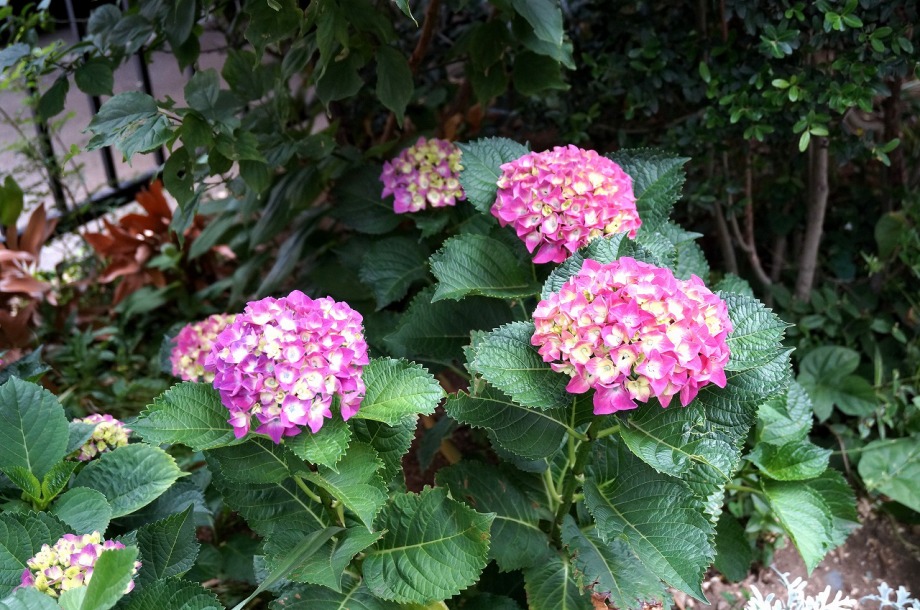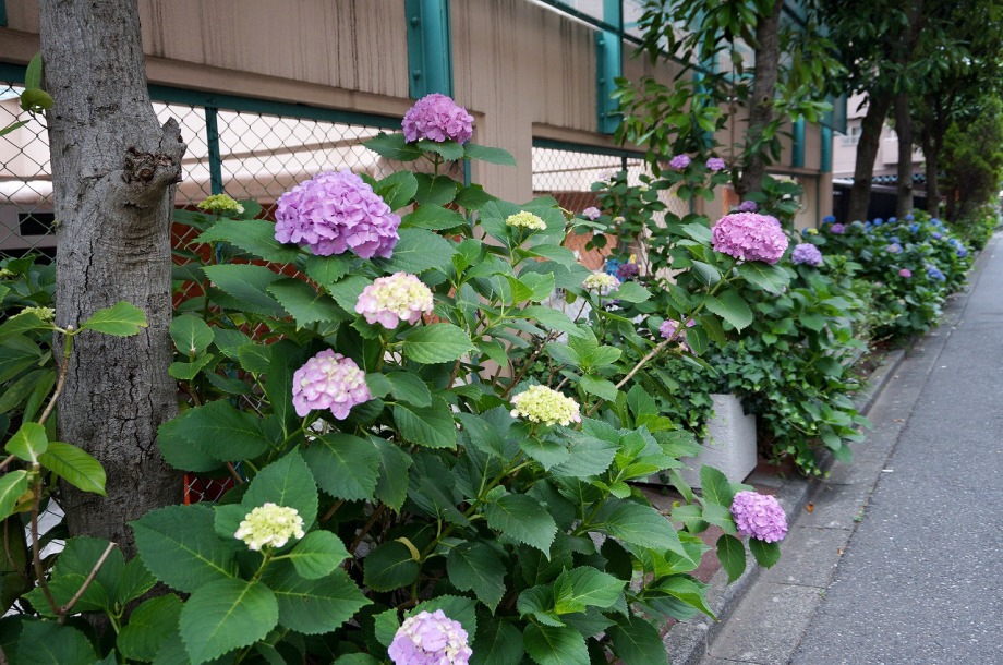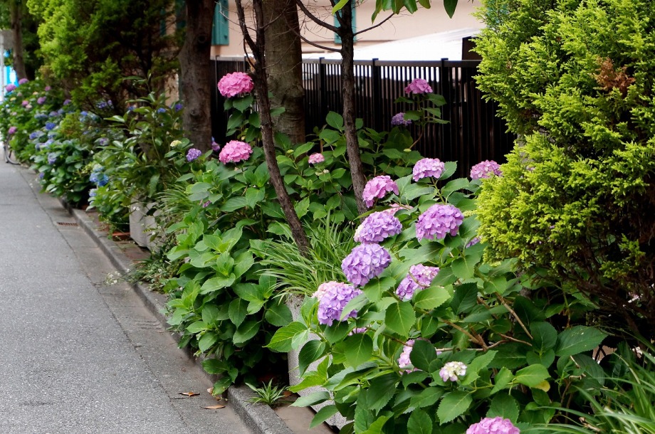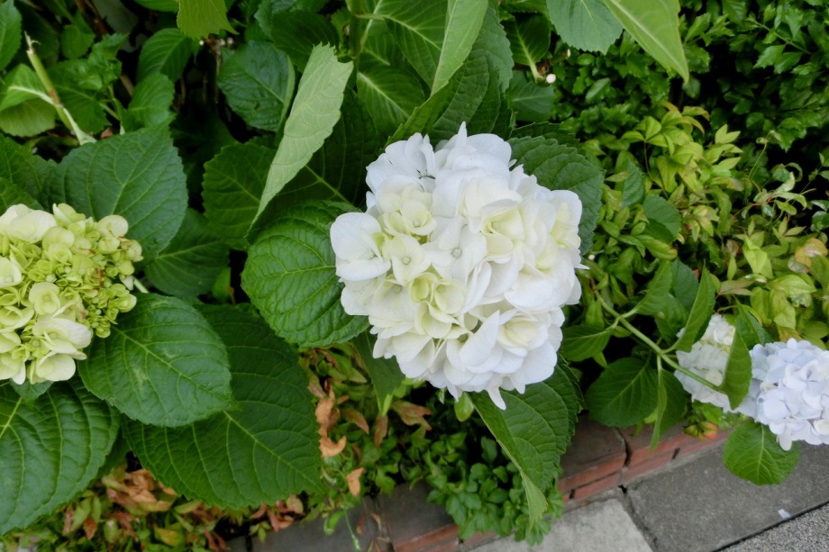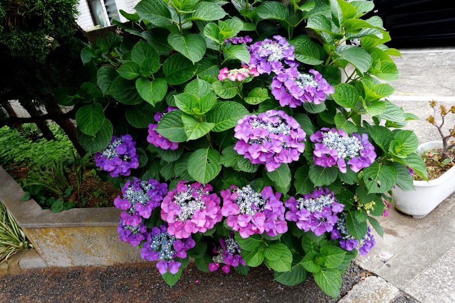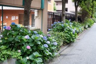 「一言」春日神社の階段の横には黄色とオレンジ色の透かし百合が咲いていました。例年、色々な色の花が早く咲くアジサイも咲き出していました。 三田4丁目の交差点の近くではアジサイやトランペットフラワーが咲いていました。豊岡いきいきプラザの前には真白なアジサイが咲いています。 三田5丁目のマンションの横には色々な色のアジサイがたくさん咲き出しました。今年は特に赤い花も咲いています。