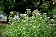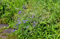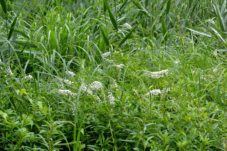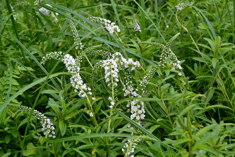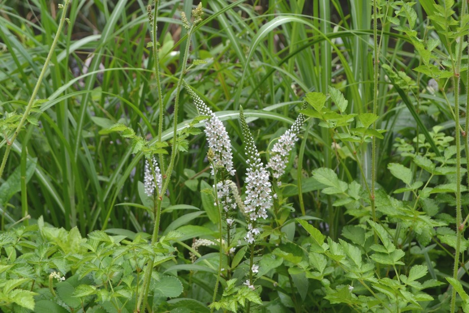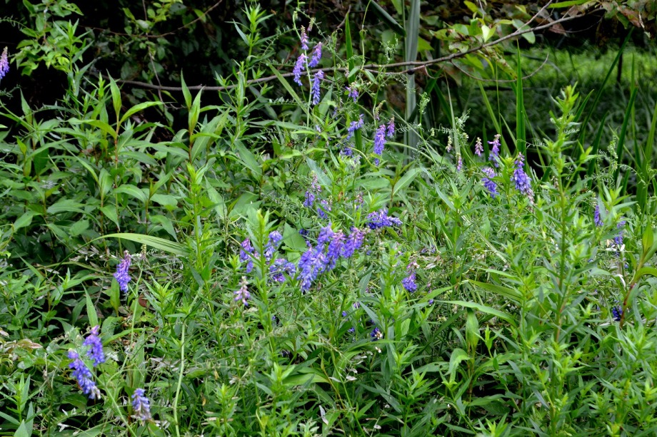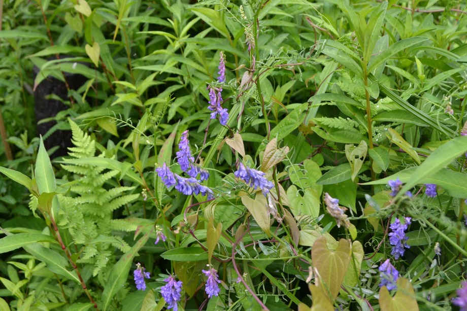 虎の尾のようなイヌヌマトラノオやクサフジなど色々な花が咲いていました。植物園の池には小さな黄色い花のアサザが咲いていた。若い女性