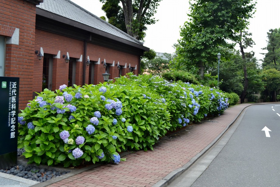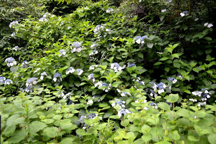 が屈んで写真を撮っているので良く見るとカナヘビでした。ガクアジサイもあちこちに咲いていました。医科研のアジサイが綺麗でした。庭園には