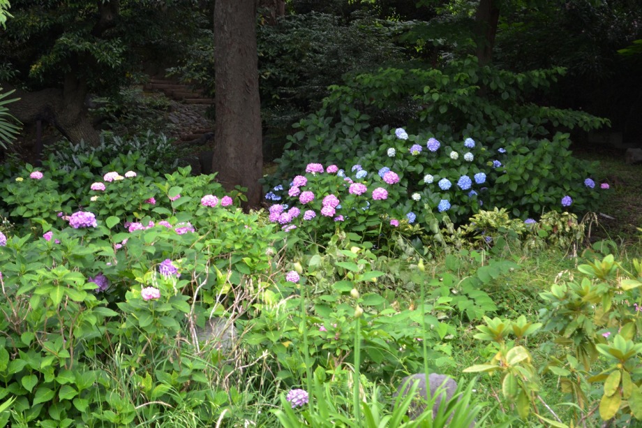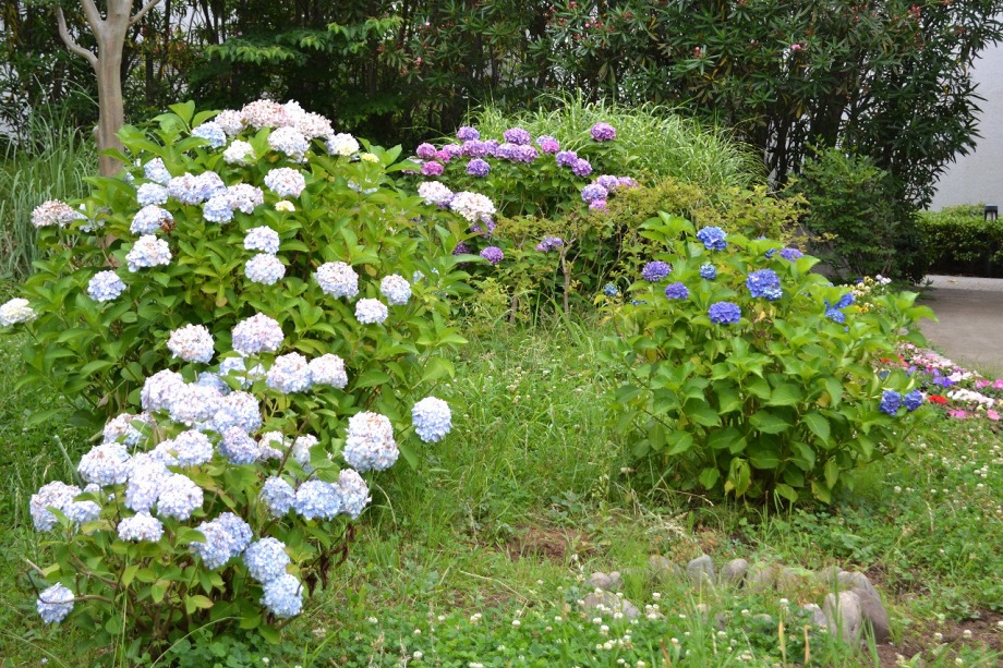 色々な種類のアジサイが咲いています。夾竹桃も咲き始めました。
