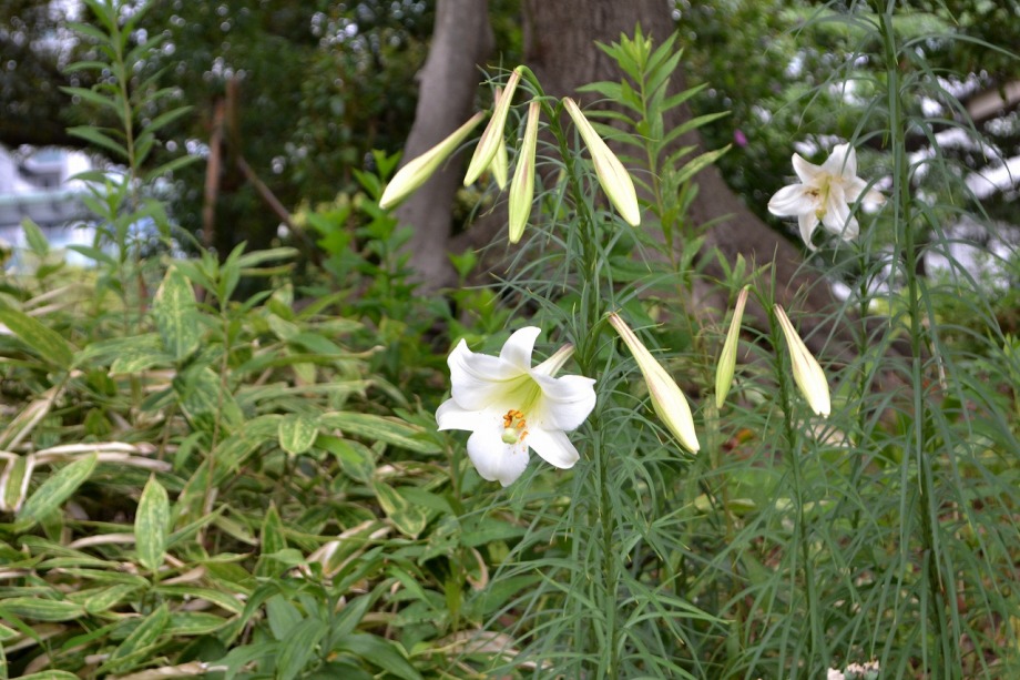 「一言」旧芝離宮の入り口には桔梗の花がまだ咲いていました。タカサゴユリも咲き始めたところで、間もなくたくさんの花が咲く感じです。
