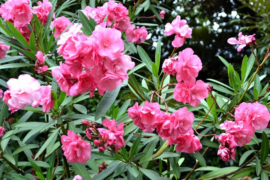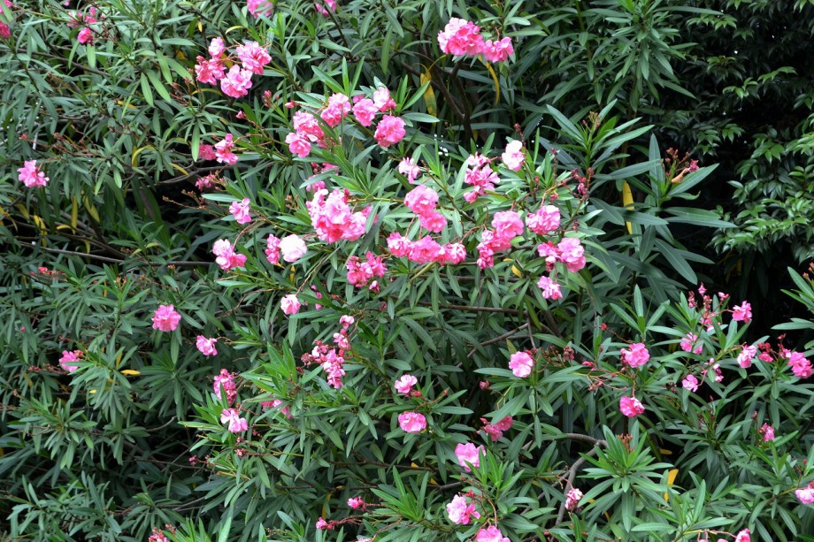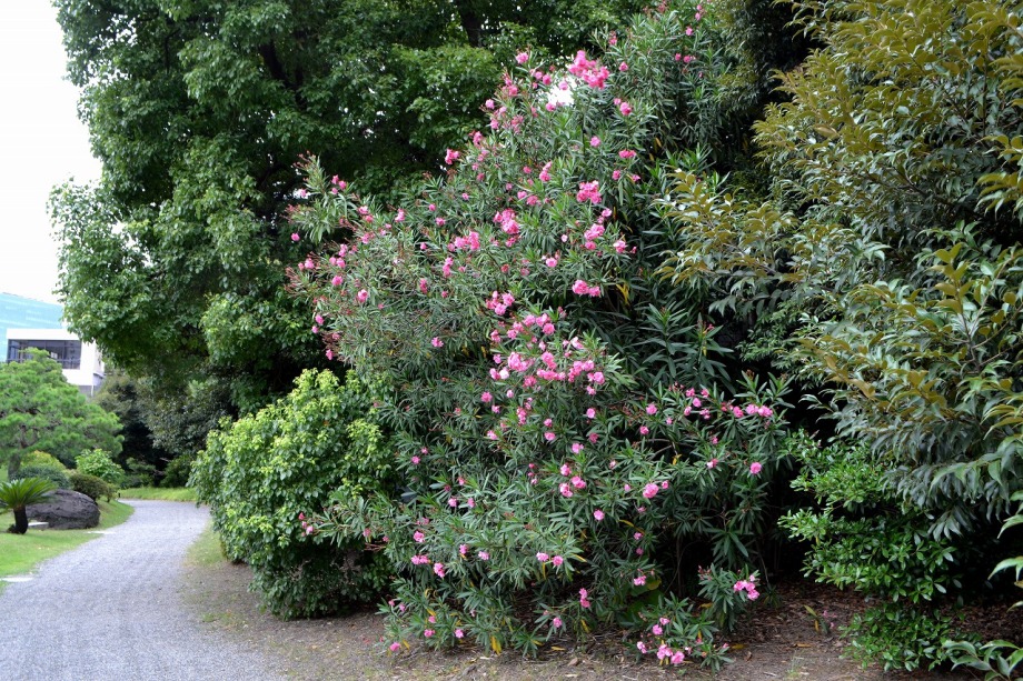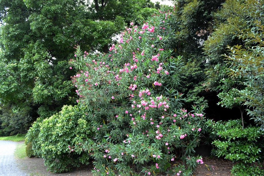 大きな夾竹桃にはピンク色の花が満開でした。非常に暑い日が続きますが、色々な花が咲いていました。