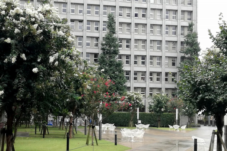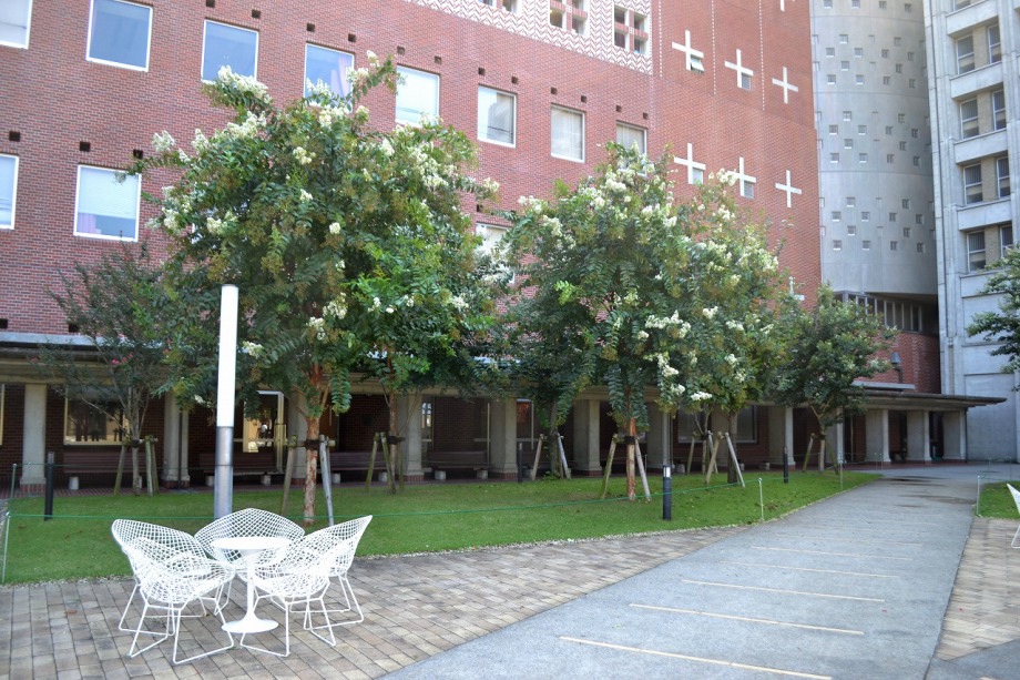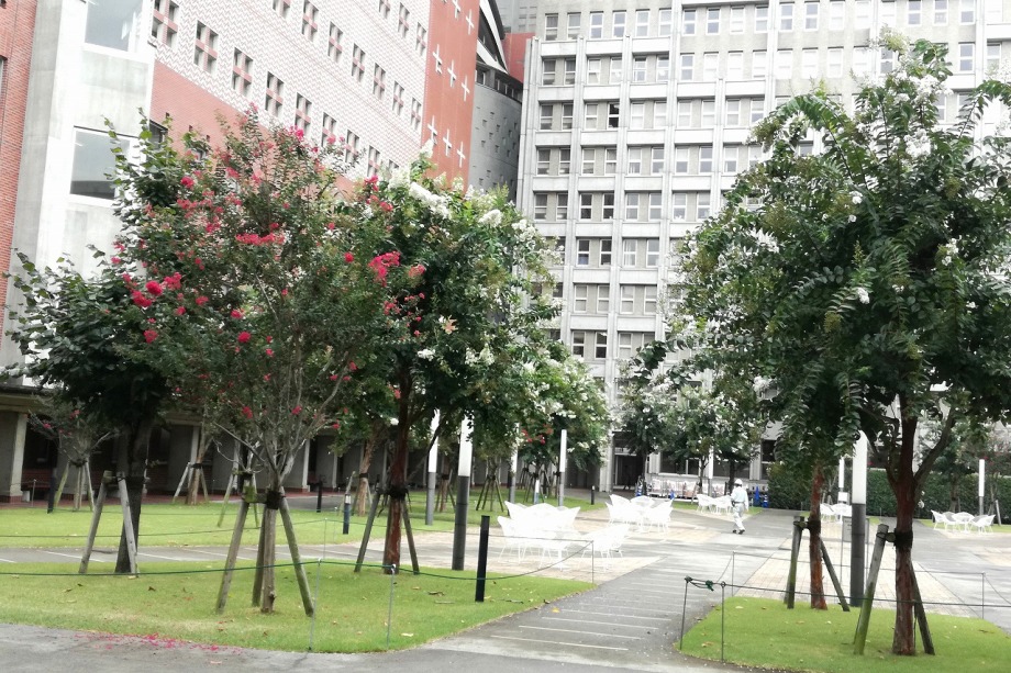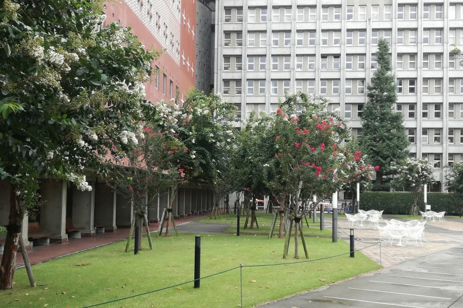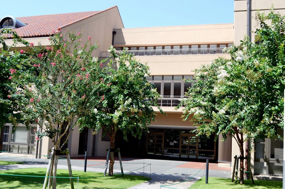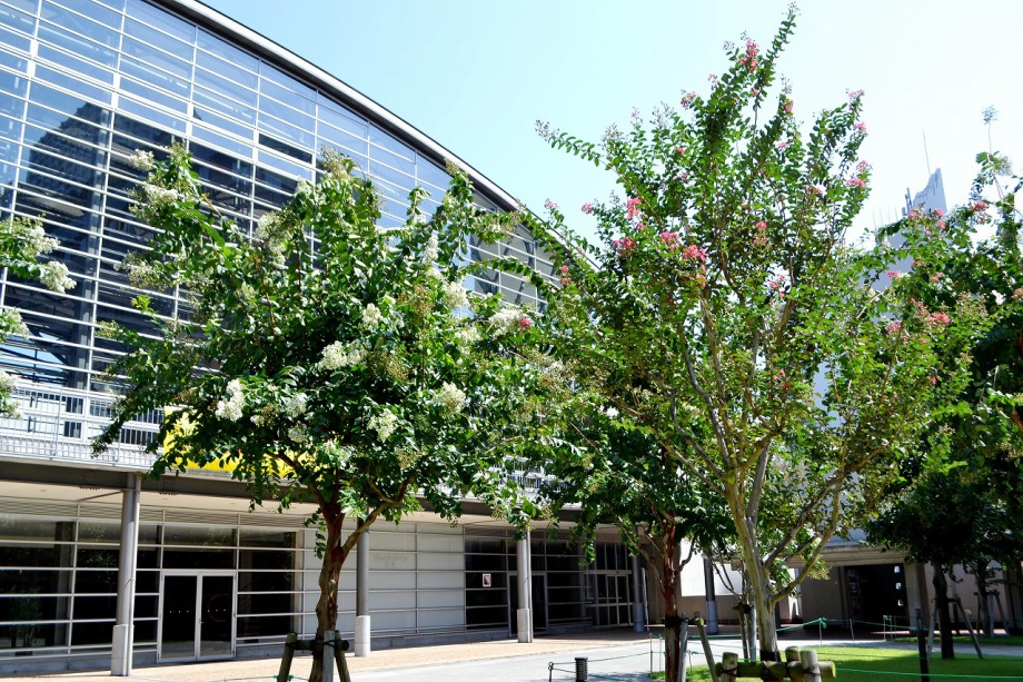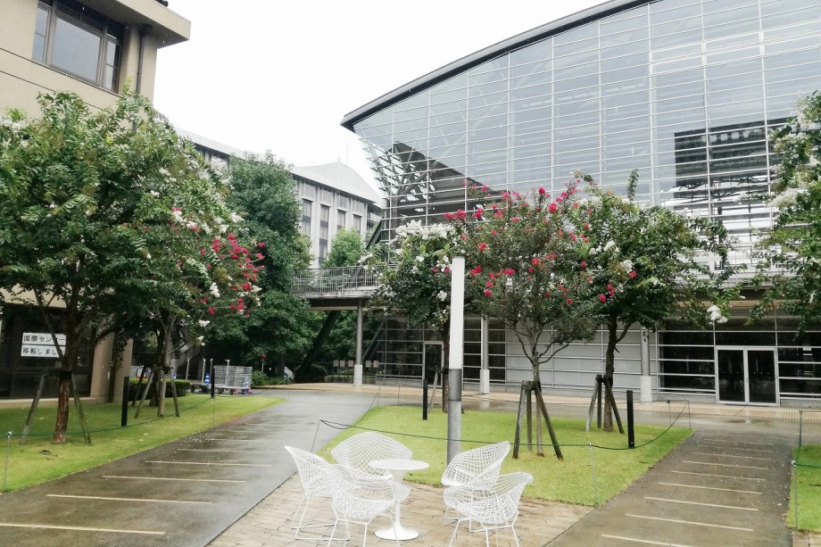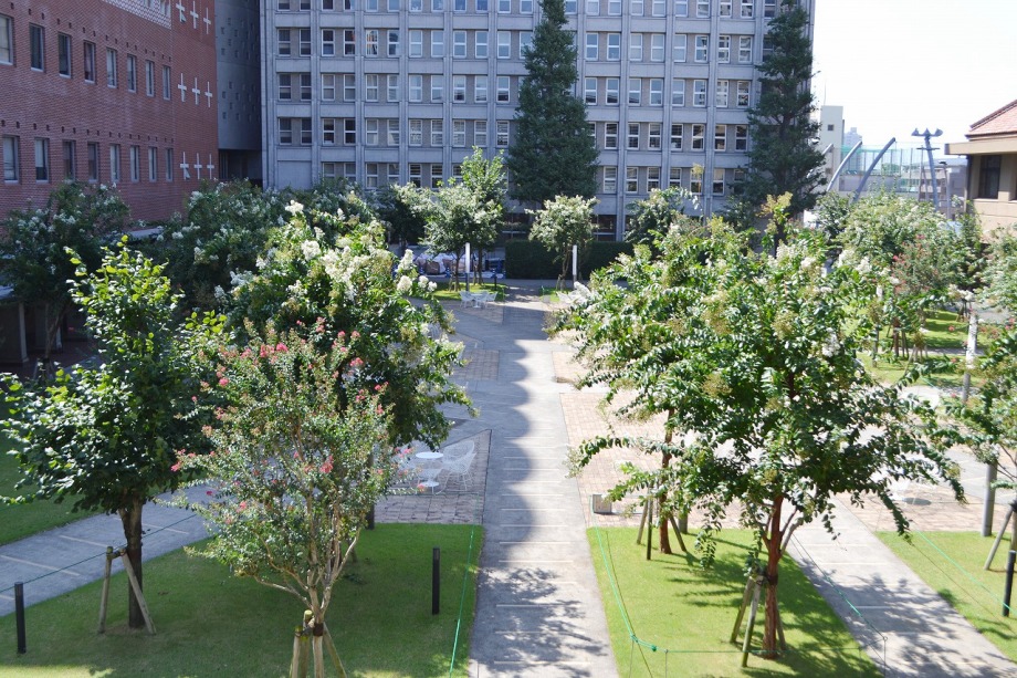 「一言」明治学院大学に行ったら、校庭に百日紅の花がたくさん咲いていましたので、写真を撮りました。3日は曇っていましたので、天気が 良くなった5日も写真を撮りに行きました。4日に台風が来たので、ピンク色の花がたくさん散っていました。