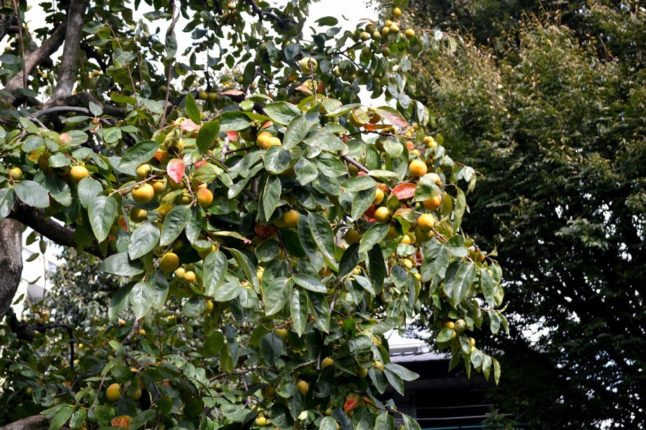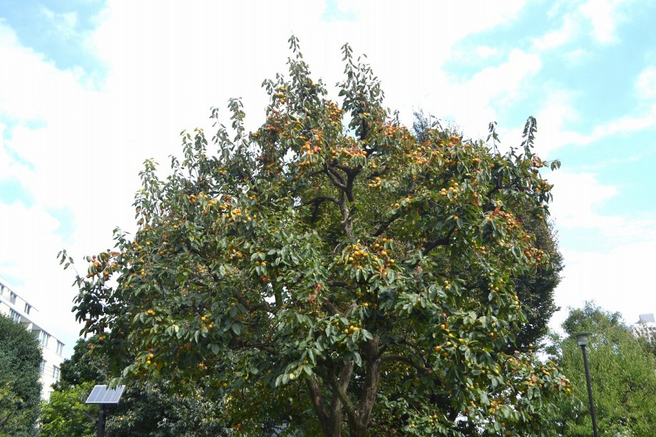 10月9日には。亀塚公園にピンクの花が咲いていました。三田台公園には柿が一杯なっています。薬王寺には白い萩の花が満開でした。