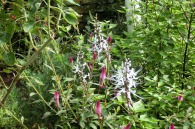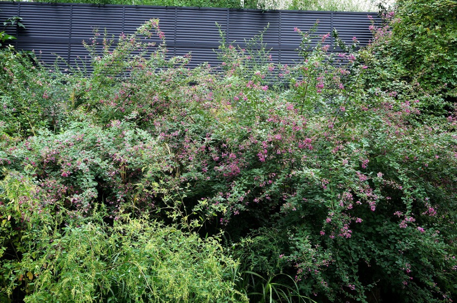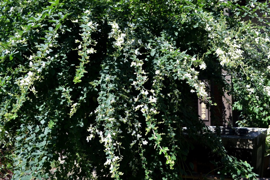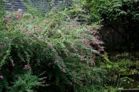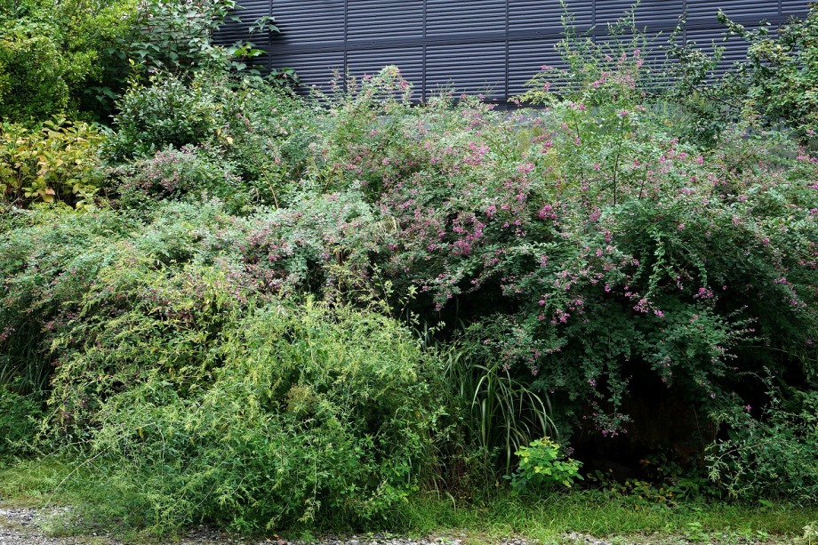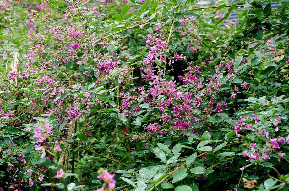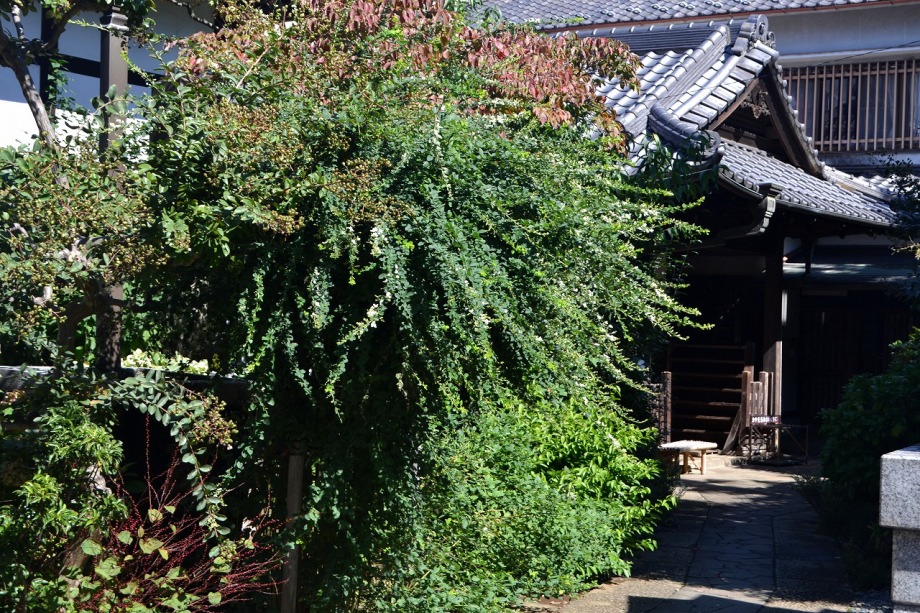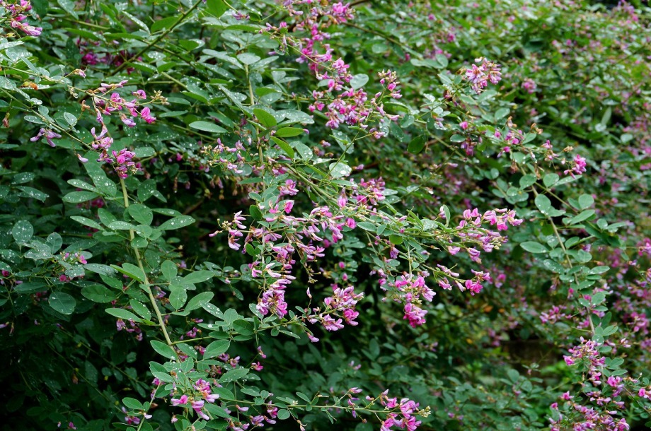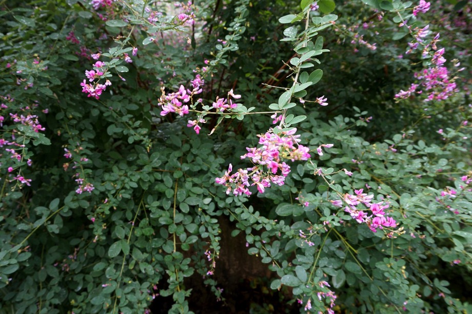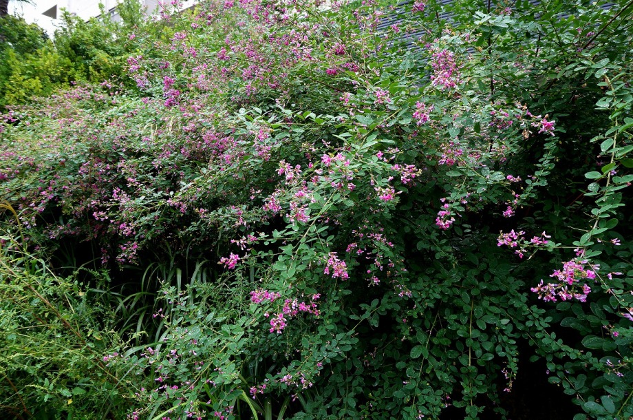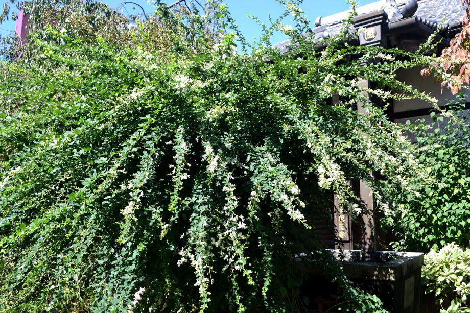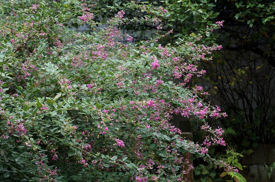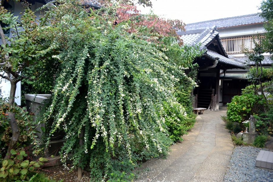 います。実相寺の近くでは大きな萩の木がありますが、ピンク色の萩の花が満開です。