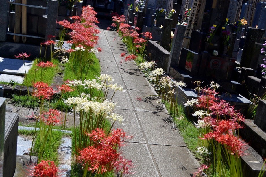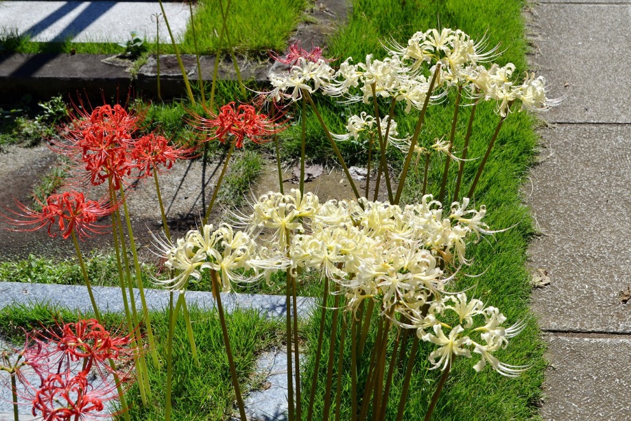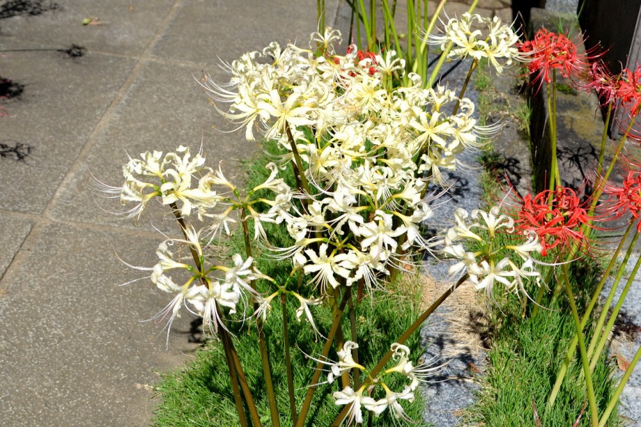 可愛らしいお花が色々と咲いています。玉鳳寺の墓地には彼岸花がまだたくさん咲いていました。和尚様のお話では今年は秋分の日