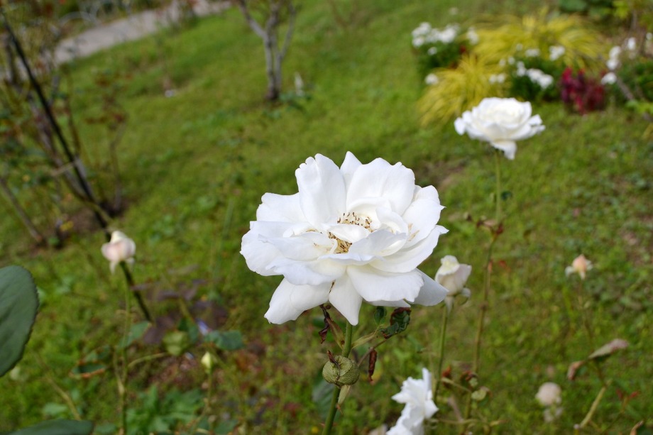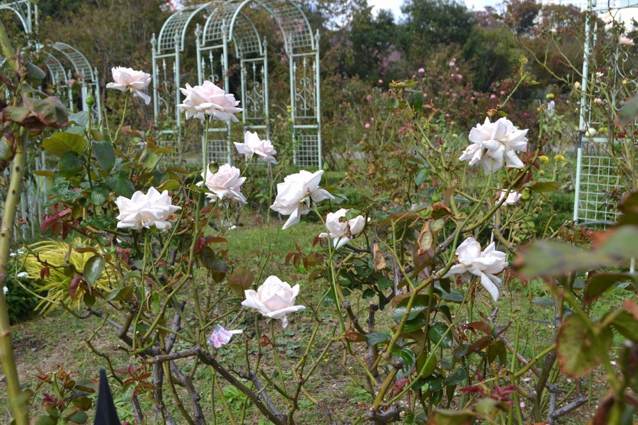 「一言」芝プリンス公園に遅咲きのバラの花が本格的に咲き出しました。ピンク色や黄色、白い花や真っ赤な花など色々な色の花ががたくさん 咲いていて見ていると楽しくなります。芝公園の増上寺の銀杏も黄葉し始めました。ここの銀杏は先日の台風の塩害に耐えた感じです。