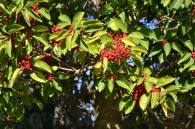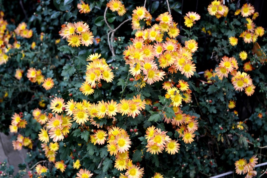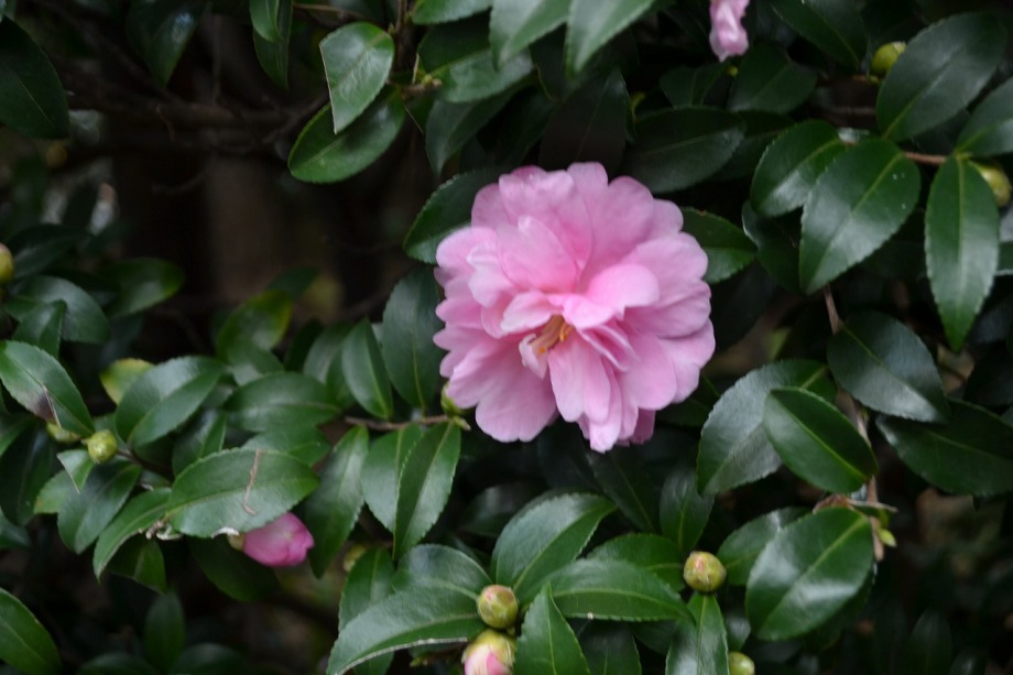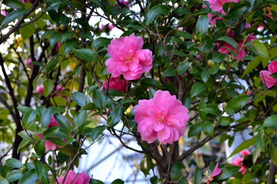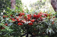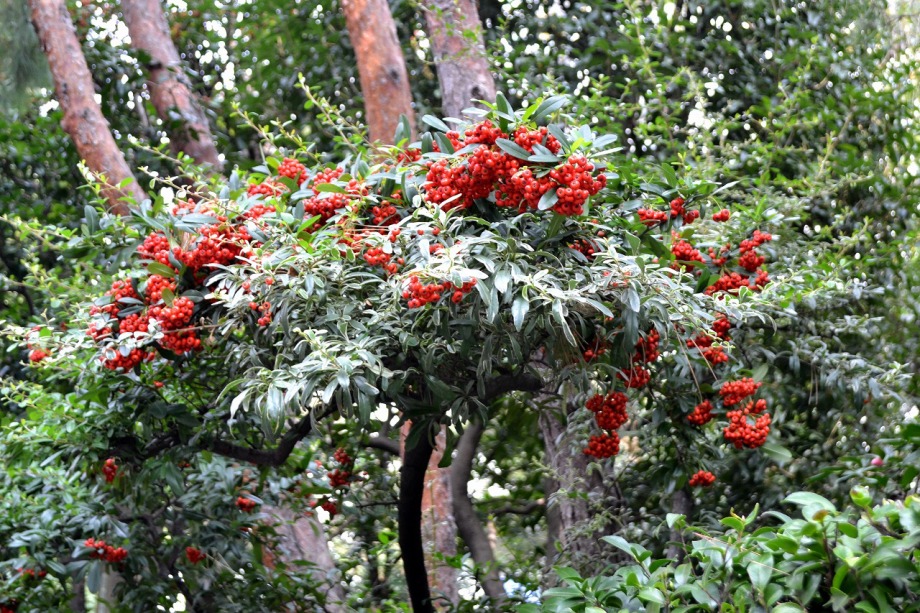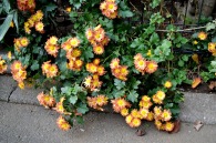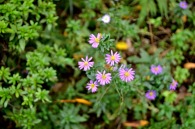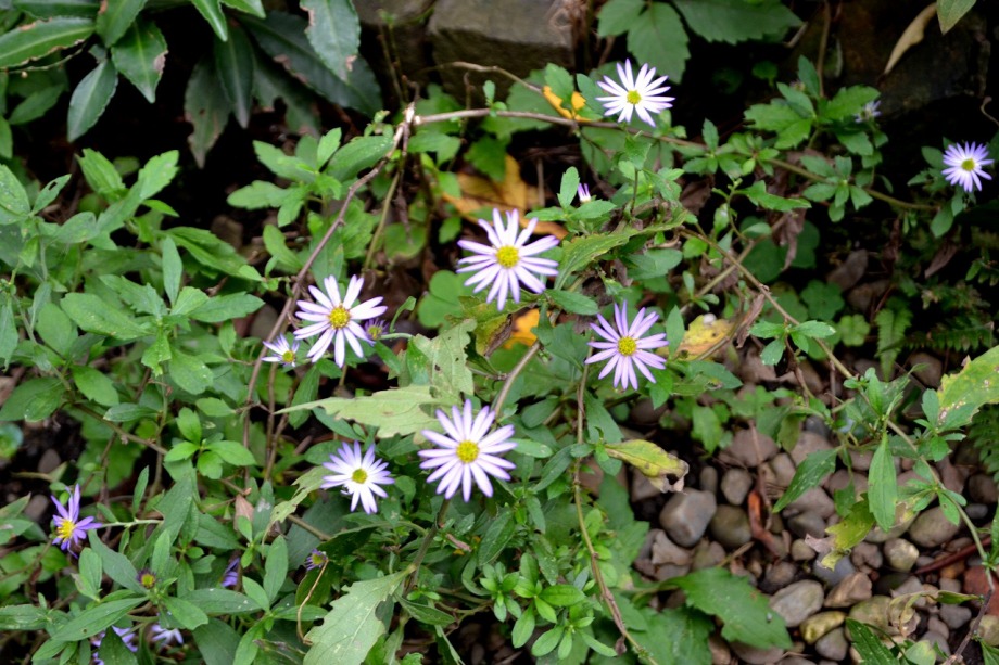 「一言」三田5丁目の龍源寺には色々な種類の野菊が咲いています。また、サザンカも白とピンクの色の形の違う花が咲いています。 三田台遊園は広くなっていて、奥の方にはサザンカがたくさん咲いています。また、グロガネモチという大きな木には赤い実が たくさんなっています。ハナミズキも色づいており、柿もたくさん実っています。