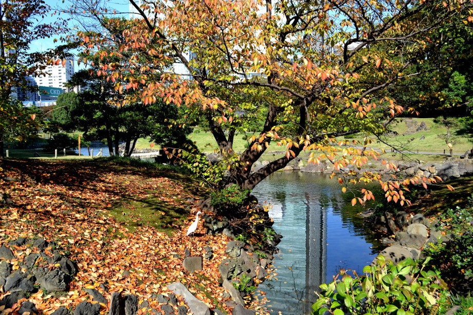 「一言」今日は天気が良いので、芝公園のイチョウを見に行きました。いつも早く黄葉する増上寺のイチョウはかなり黄葉していて綺麗でした。 旧芝離宮には桔梗やシュウメイ菊の花も残っていました。モミジの紅葉はまだですが、桜の葉の色が変わって良い感じになっていました。 カンツバキやモチツツジも咲いていました。シラサギが落ち葉の上にとまっていました。タンポポの花も咲いていました。