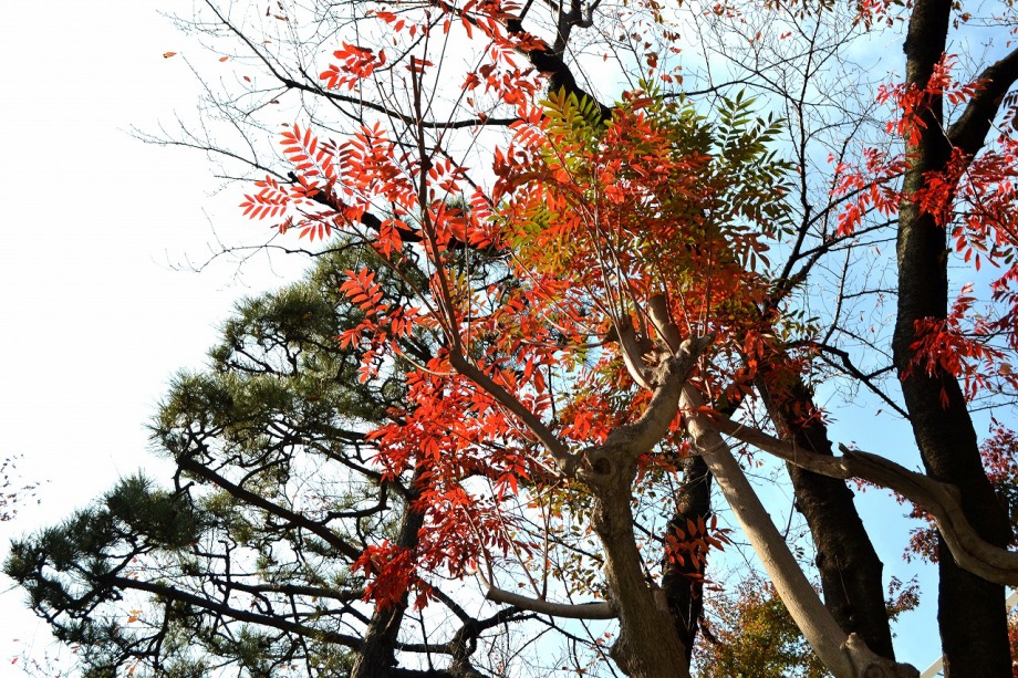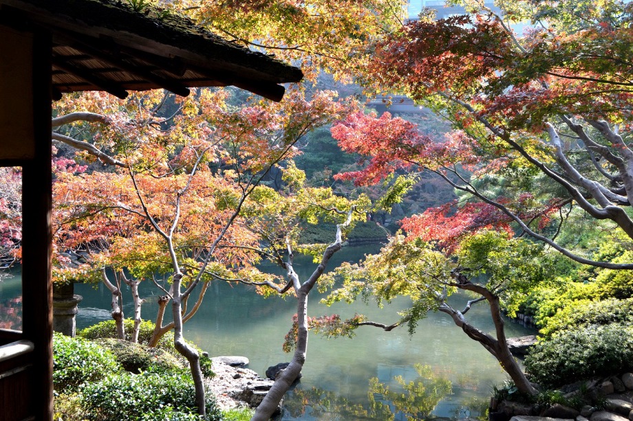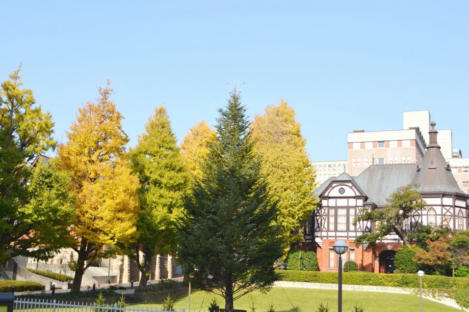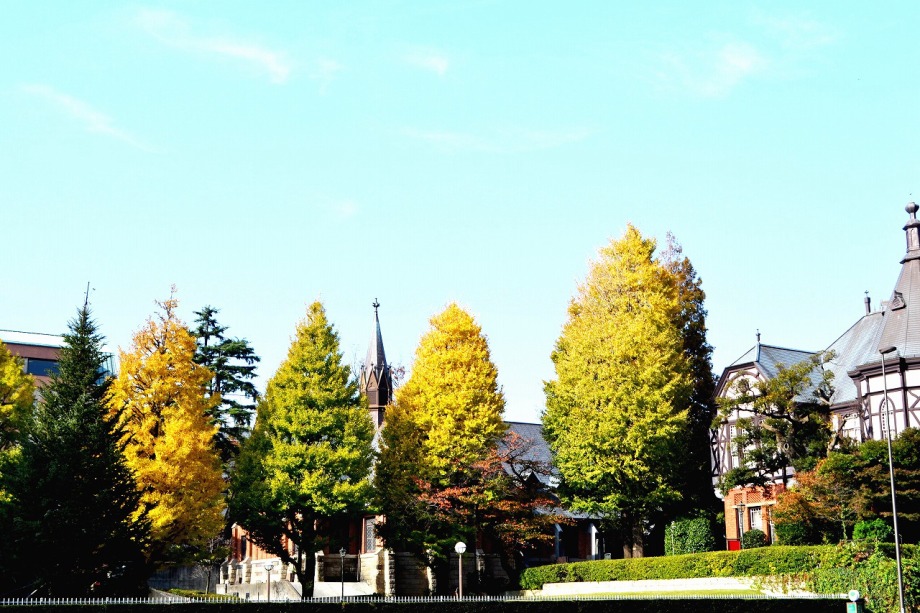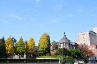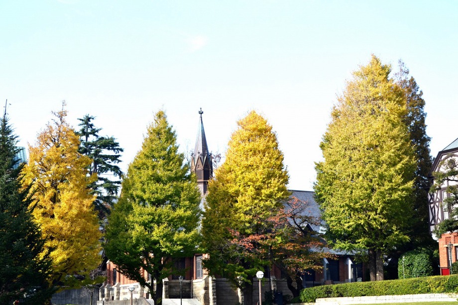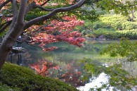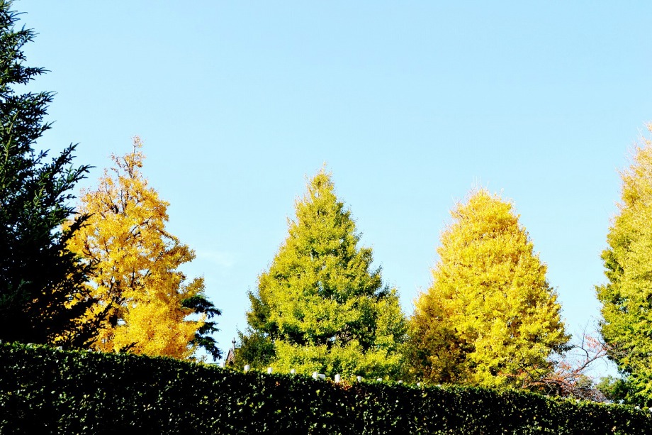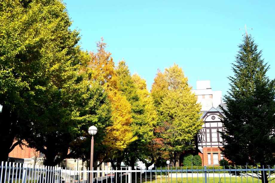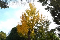 「一言」明治学院大学の正門から入ったところに植えられているイチョウの黄葉を見に行きました。1本のイチョウは黄葉していましたが、 他の木はまだ葉が青い状況です。医科研の正門のイチョウもこれから黄葉するという感じです。八芳園のもみじは紅葉していました。 池の周りにはかなり赤くなっていて風情があります。入り口横のモミジは真っ赤になっていて綺麗でした。