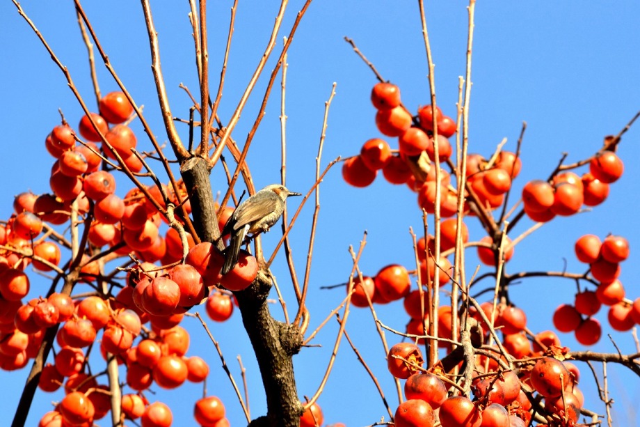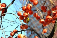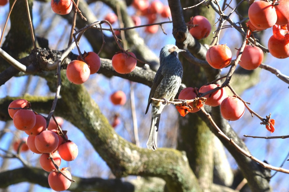 「一言」年末で天気が良いので、三田台遊園に柿の実を食べている鳥を撮りに行きました。高い柿の木の実はすべて鳥に食べられていました。