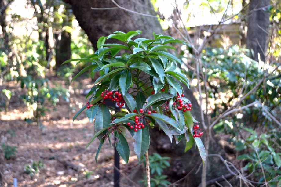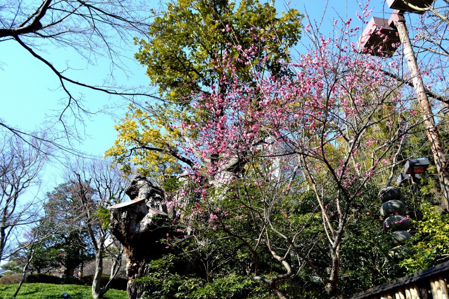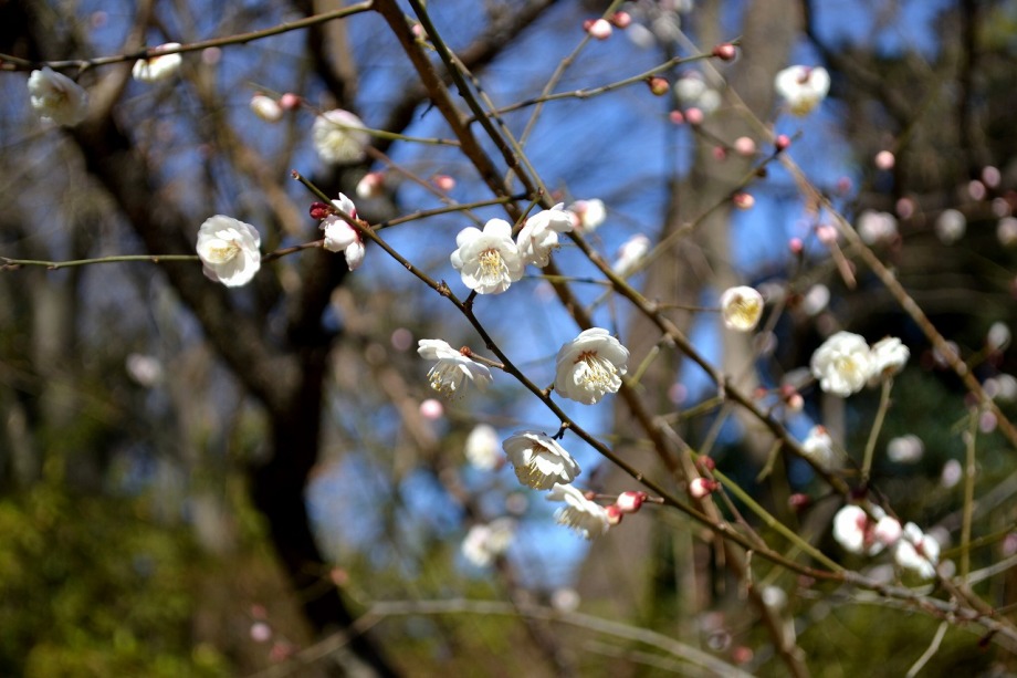 「一言」白金地域の梅の花を探しに行きました。八芳園に紅梅が咲いていました。形よく整理された紅梅が庭にありました。 都庭園美術館には庭の池の横に白梅が咲いていました。広場にはロウバイと紅梅が咲いていました。自然教育園 には梅の花は見当たりませんが色々な実がなっていました。真っ赤な粒粒のようなムサシアブミは造形物のような感じ がしました。帰りに二本榎通りの廣岳院に紅梅が咲き始めていました。